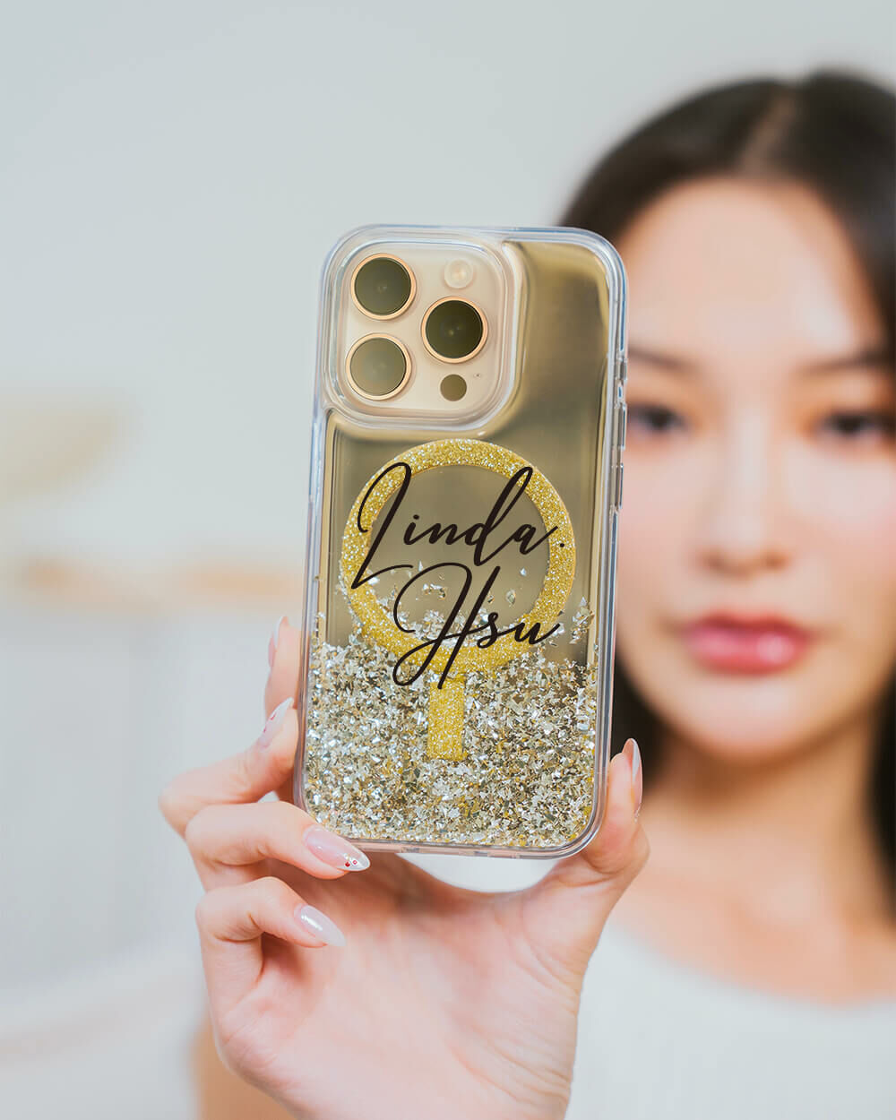 閉眼簽名 (MagSafe磁吸) 閃耀金鏡面殼 - (訂製名字) iPhone客製化手機殼