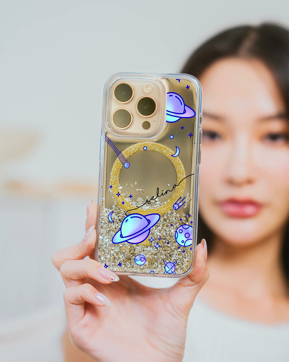 紫色星球 (MagSafe磁吸) 閃耀金鏡面殼 - (訂製名字) iPhone客製化手機殼