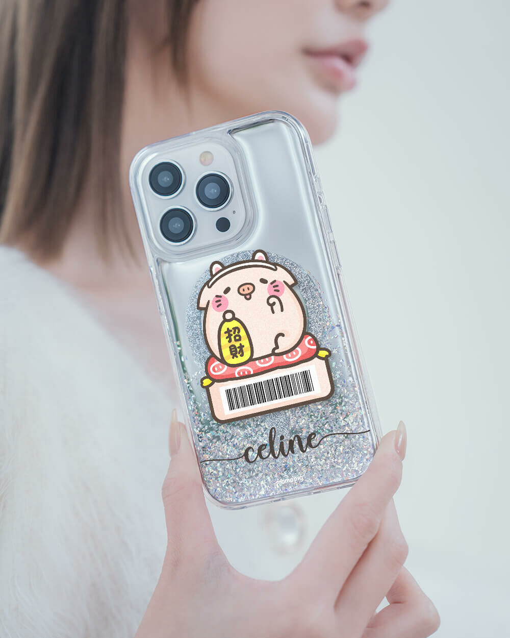 【插畫聯名】我要招財 (MagSafe磁吸) 閃耀鏡面殼 - (訂製名字) iPhone客製化手機殼