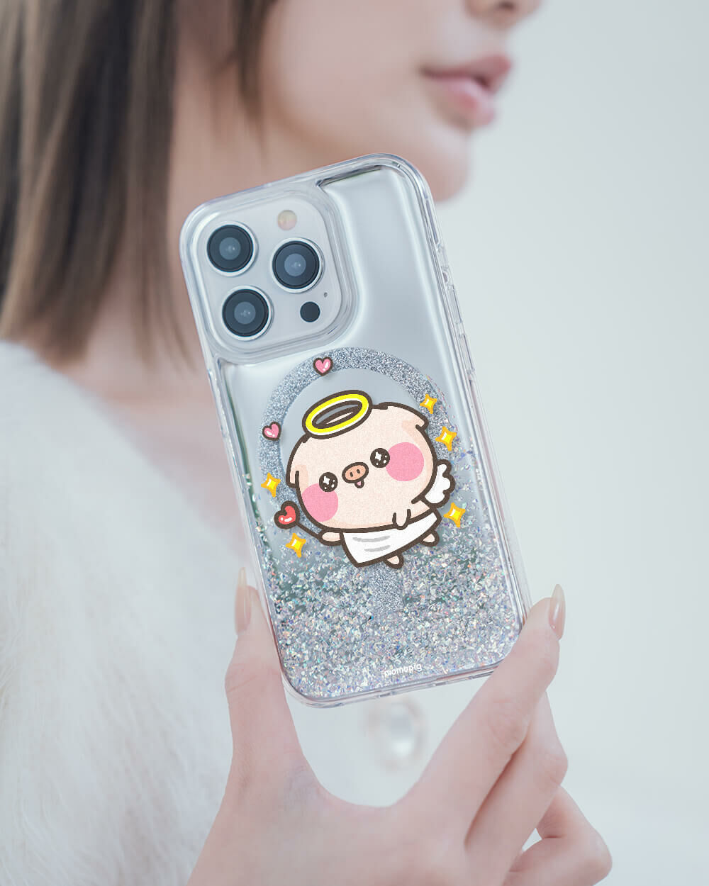 【授權聯名】天使萌萌豬 (MagSafe磁吸) 閃耀鏡面殼 - (訂製名字) iPhone客製化手機殼