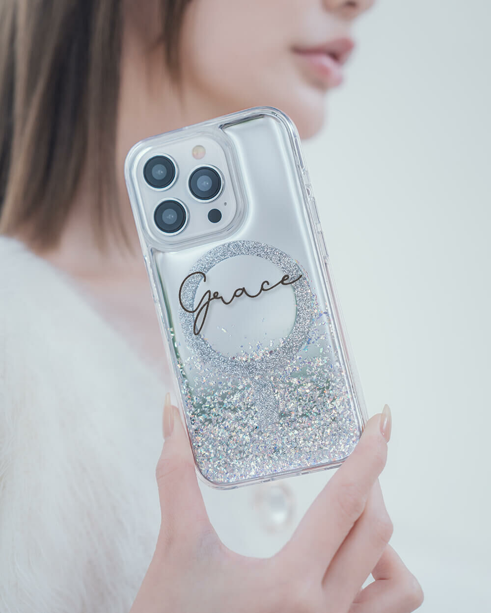 細字簽名 (MagSafe磁吸) 閃耀鏡面殼 - (訂製名字) iPhone客製化手機殼