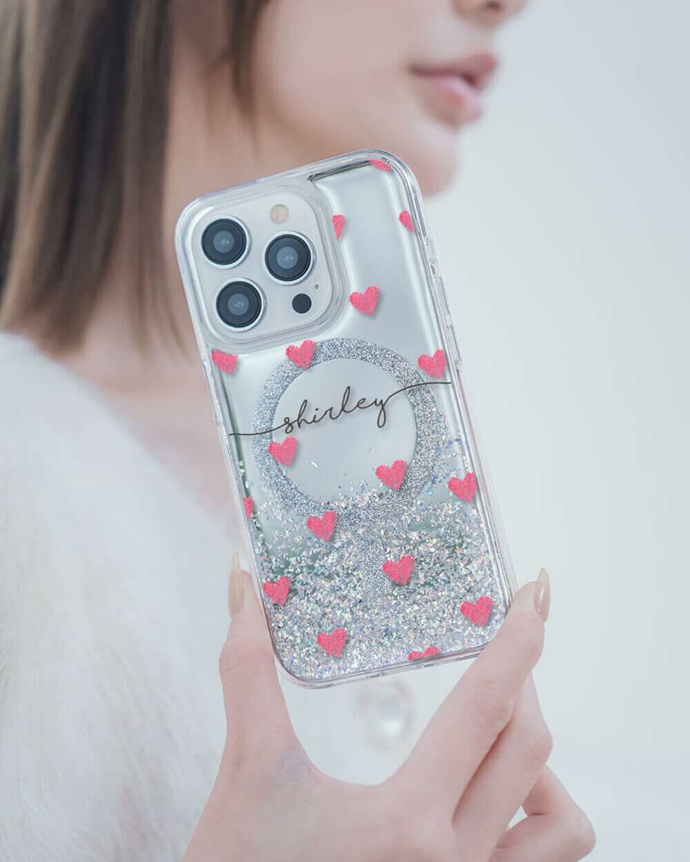 塗鴉愛心 (MagSafe磁吸) 閃耀鏡面殼 - (訂製名字) iPhone客製化手機殼