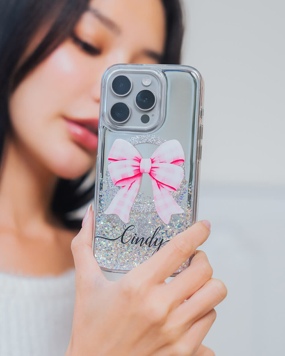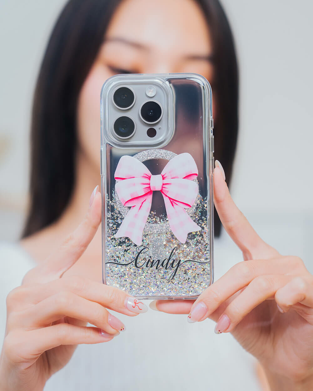 可愛格紋蝴蝶結 閃耀鏡面殼 (MagSafe磁吸) - iPhone防摔手機殼