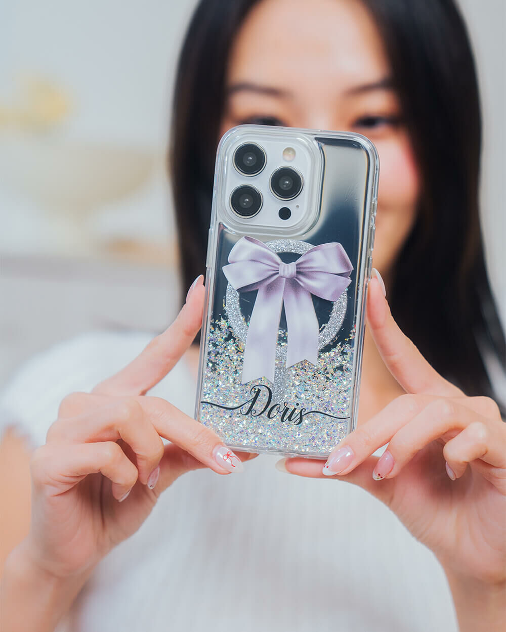 蝴蝶結緞帶(灰) 閃耀鏡面殼 (MagSafe磁吸) - iPhone防摔手機殼