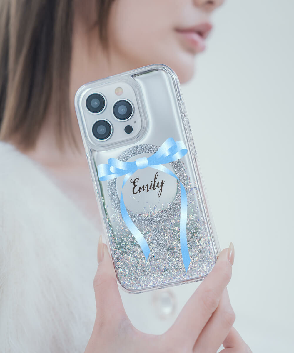 氣質蝴蝶結緞帶(藍) 閃耀鏡面殼 (MagSafe磁吸) - iPhone防摔手機殼