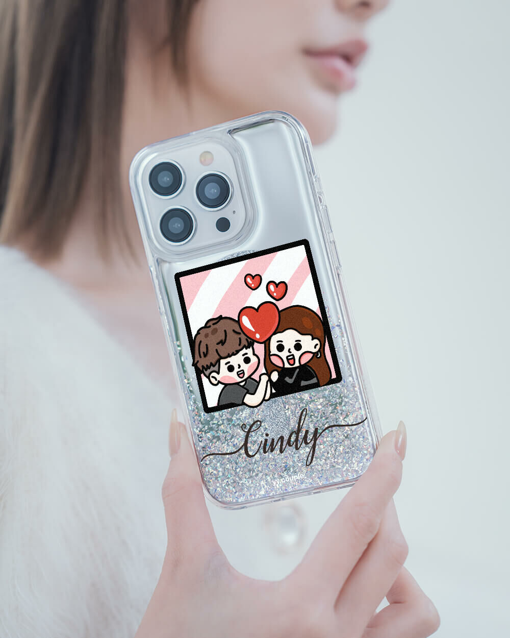 【插畫聯名】挖系小y 戀愛腦情侶 (MagSafe) 閃耀鏡面殼 - (訂製名字) iPhone客製化手機殼