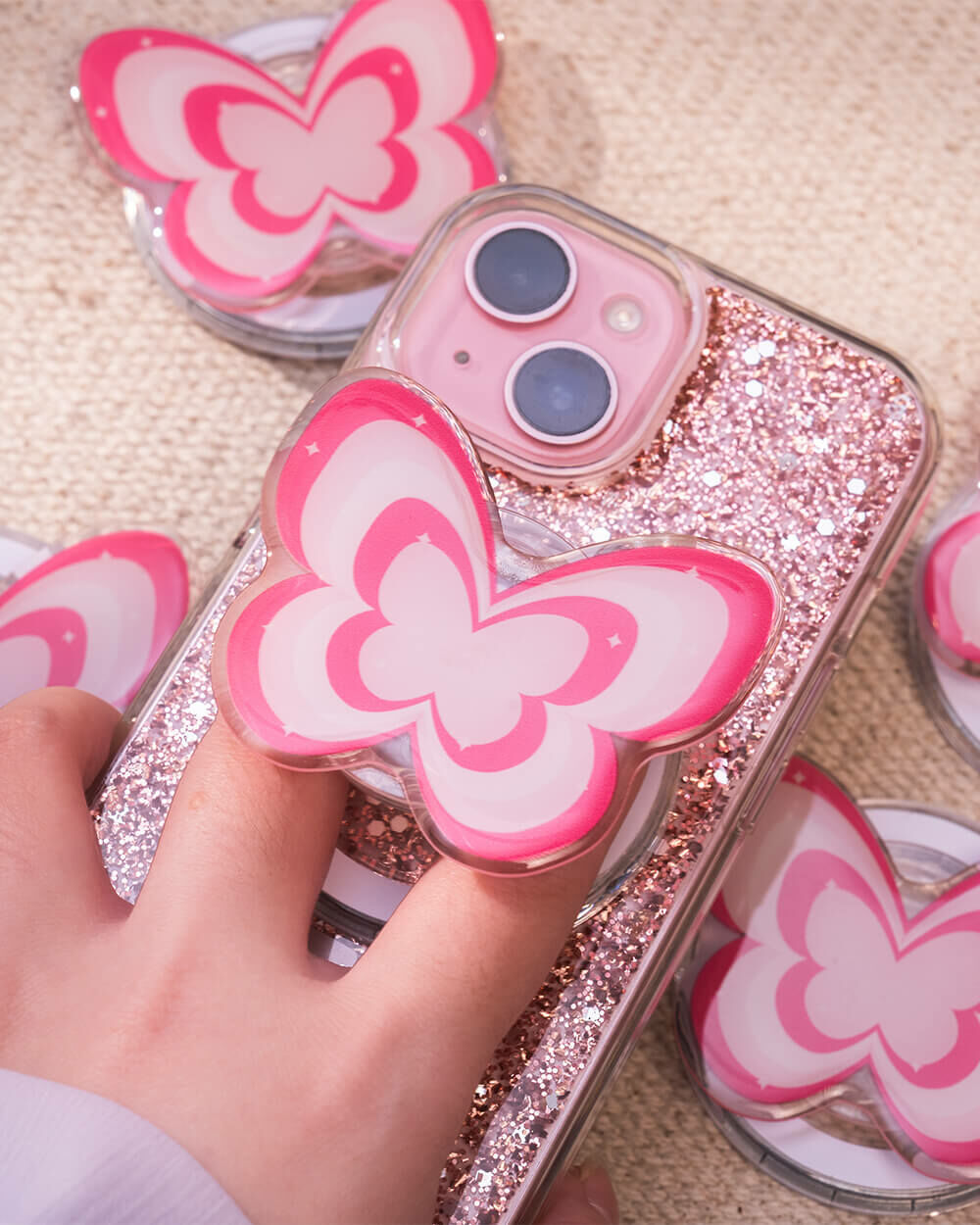 粉紅蝴蝶支架 MagSafe 磁吸- 手機氣囊伸縮支架