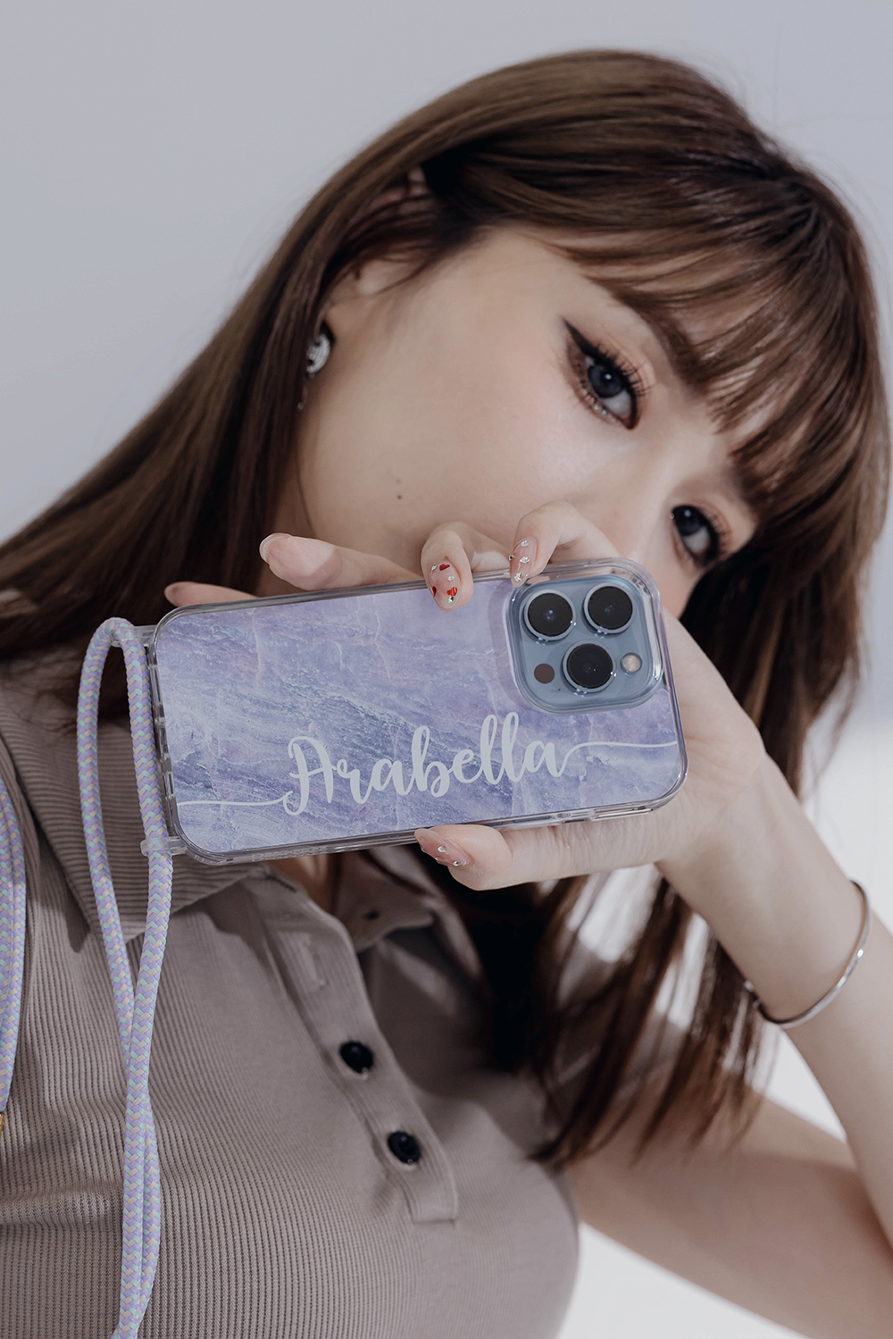 紫色大理石紋 - (客製化) iPhone透明掛繩手機殼