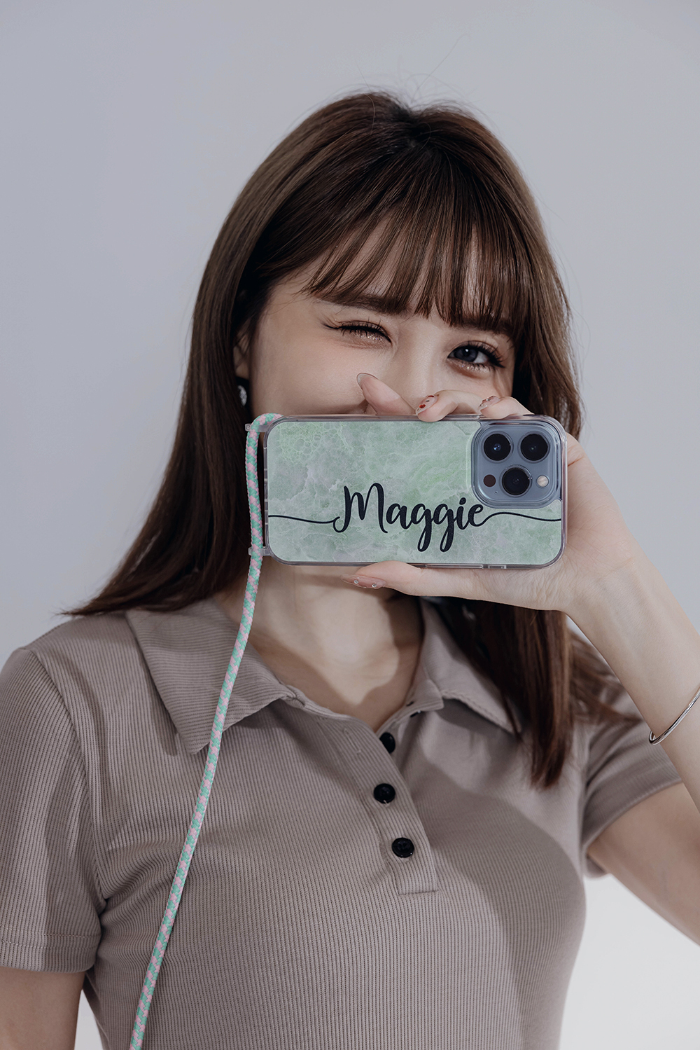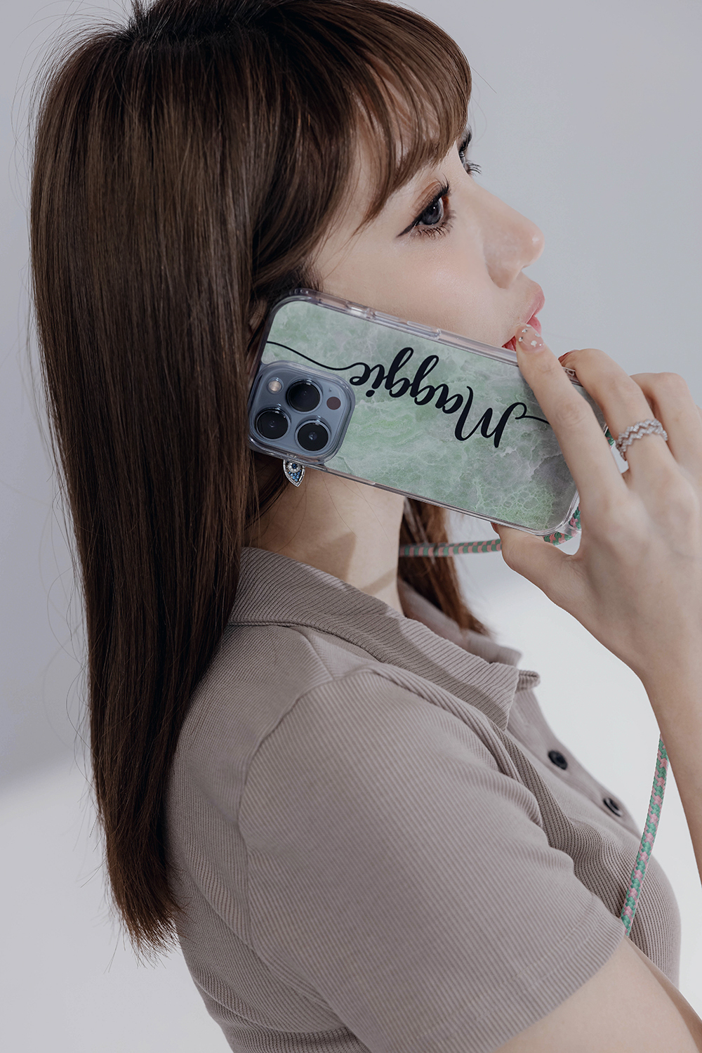 翡翠綠大理石紋- (客製化) iPhone透明掛繩手機殼