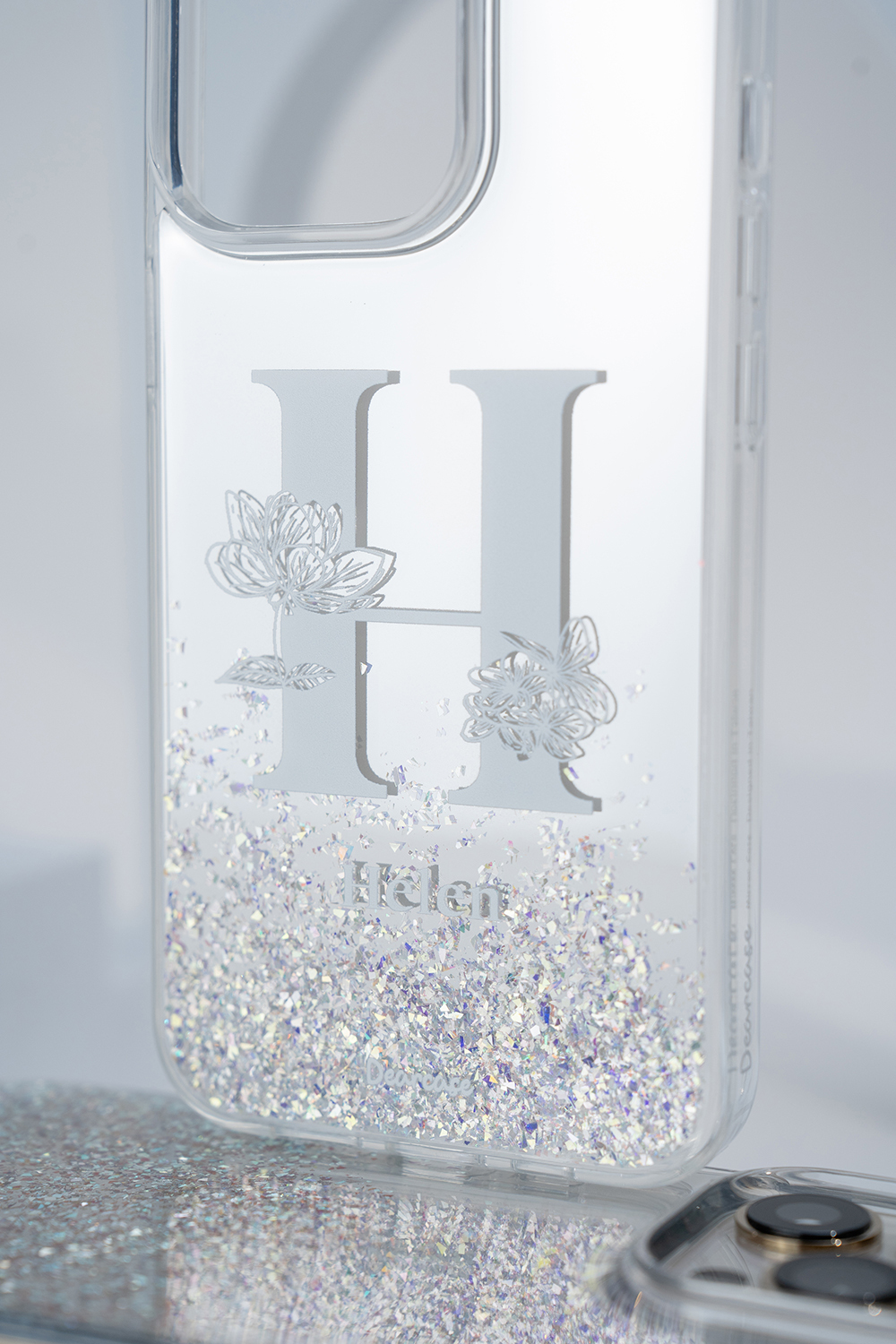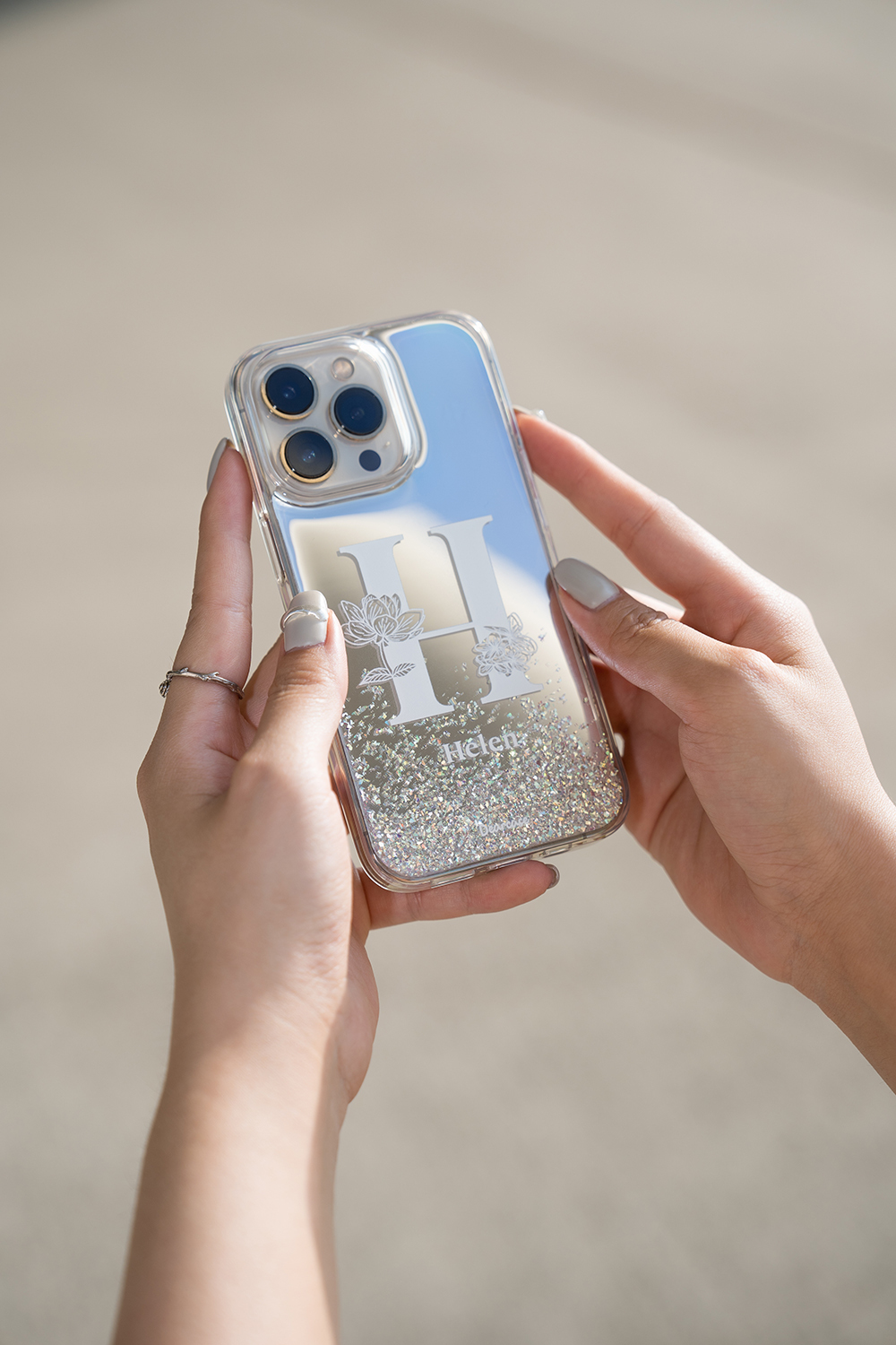閃耀鏡面殼(銀) - 大字陪襯 - (訂製名字) iPhone客製化手機殼