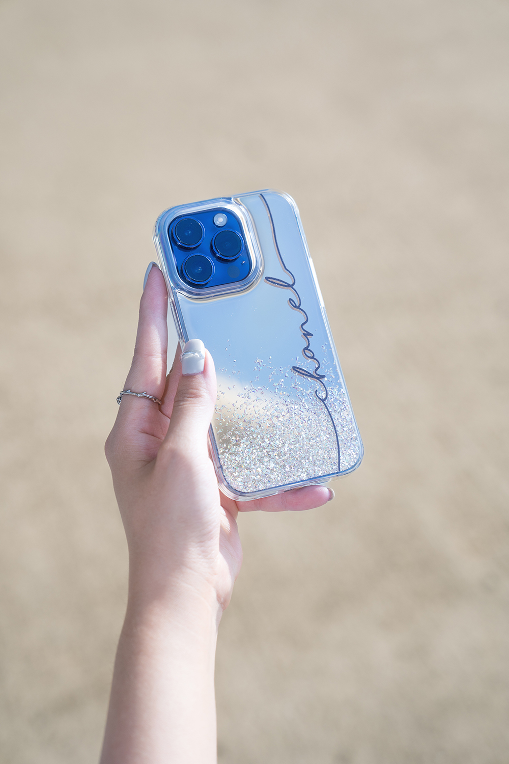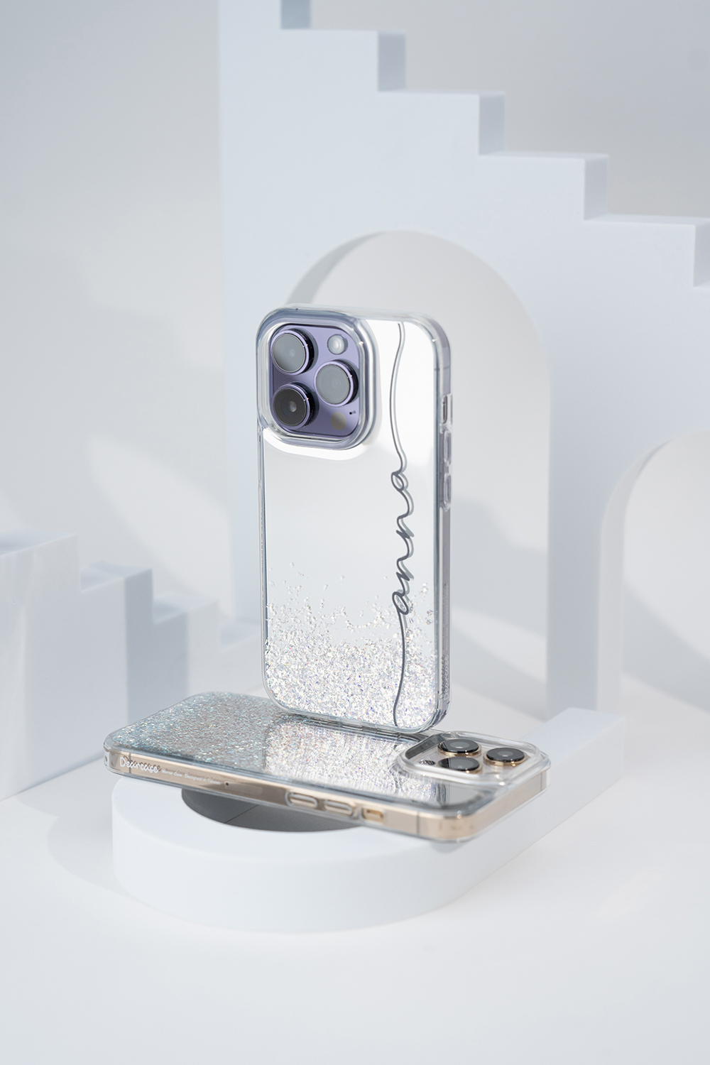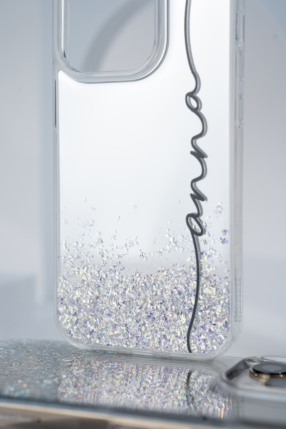 • 閃耀亮粉為自然分佈排列鏡面手機殼