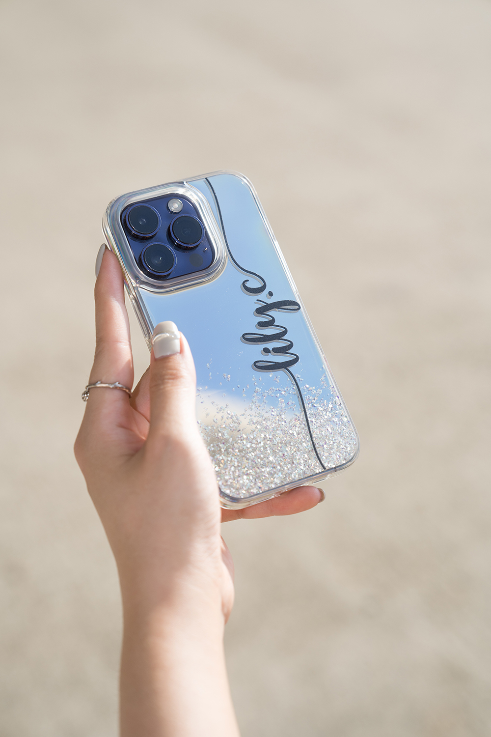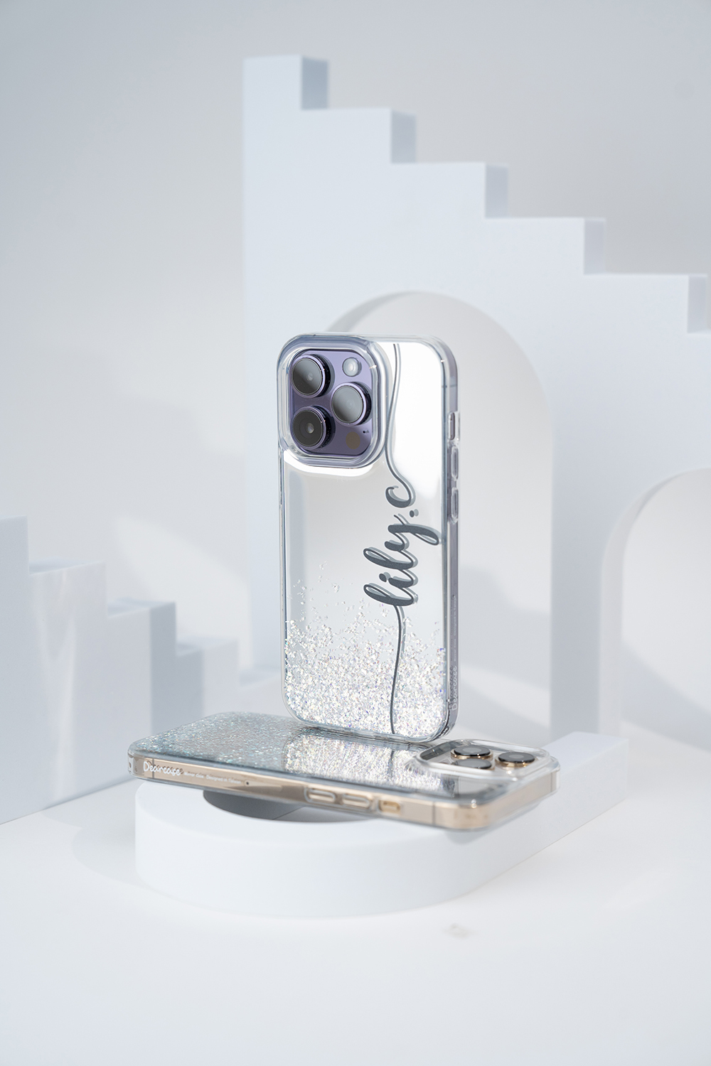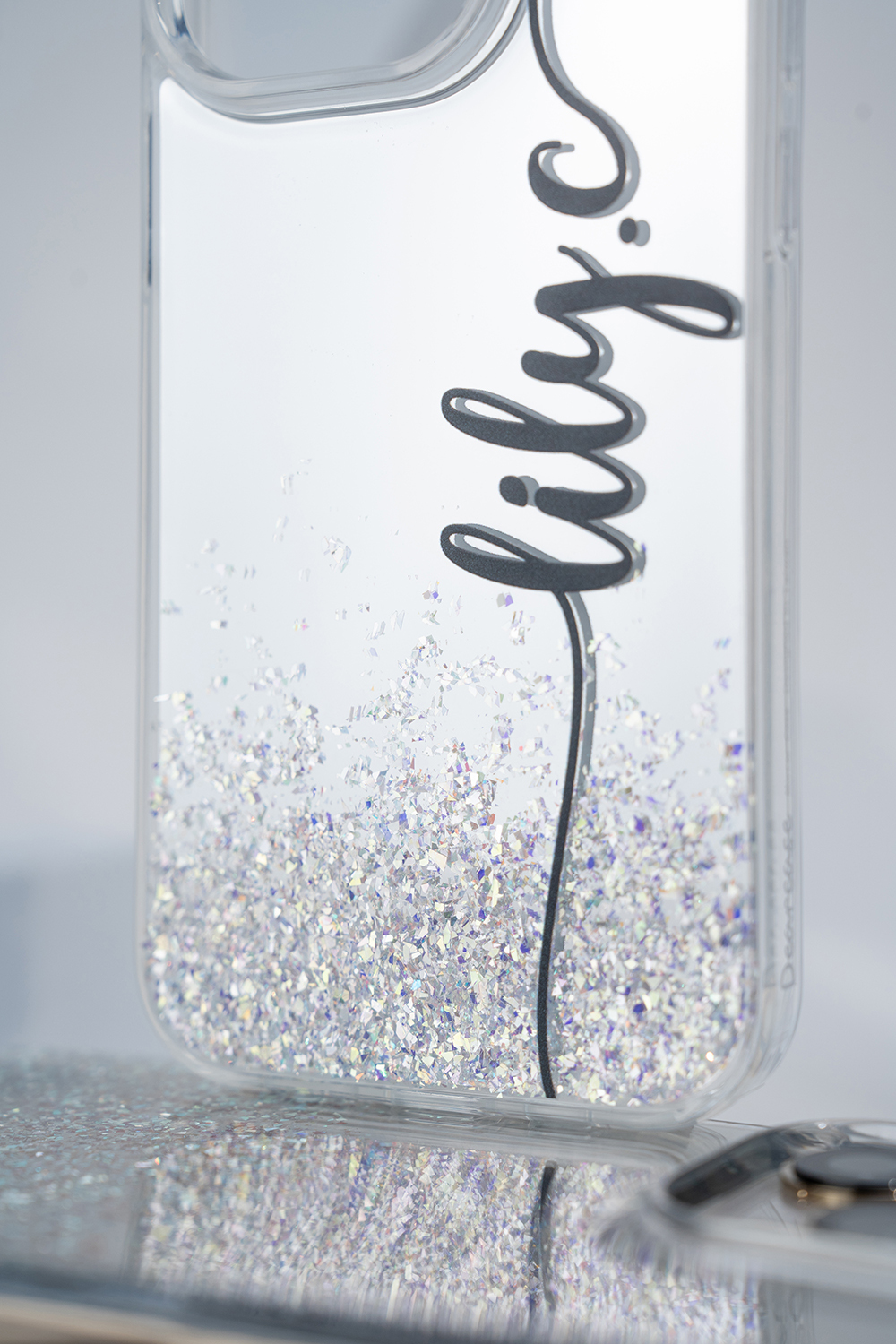 • 閃耀亮粉為自然分佈排列鏡面手機殼