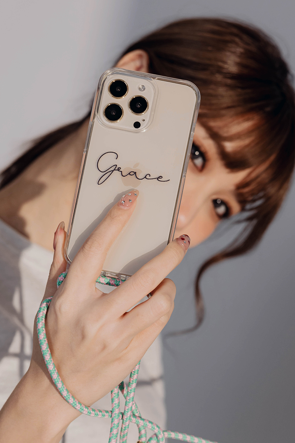 細字簽名 - (客製化) iPhone透明掛繩手機殼