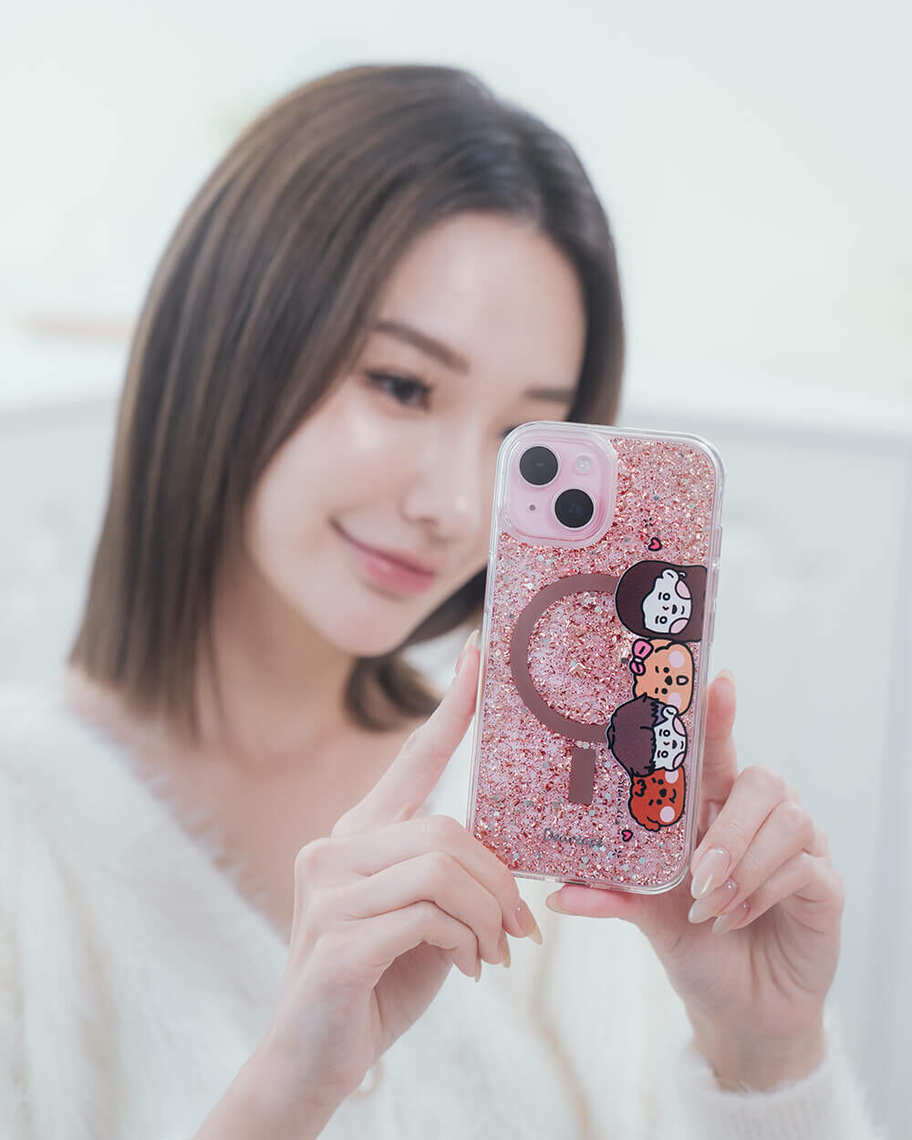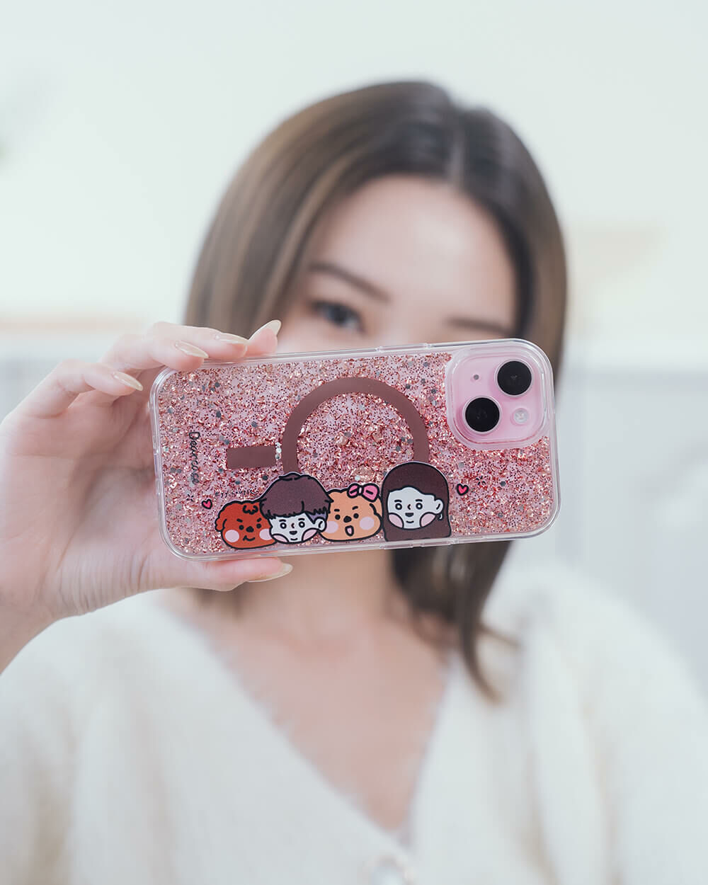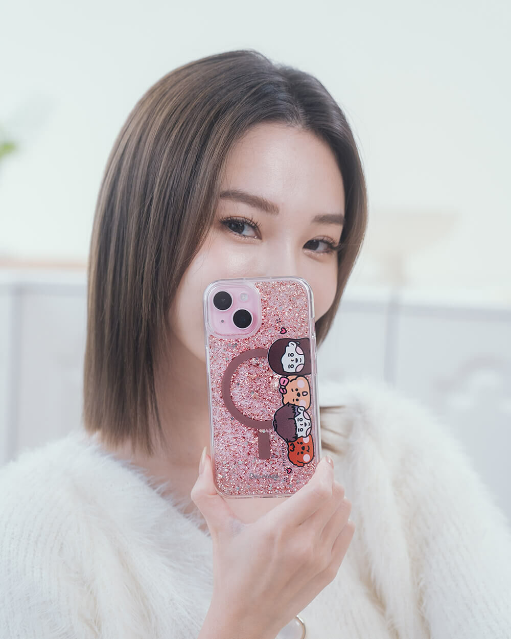 • 手機殼:玫瑰金箔+亮片+磁鐵(MagSafe)