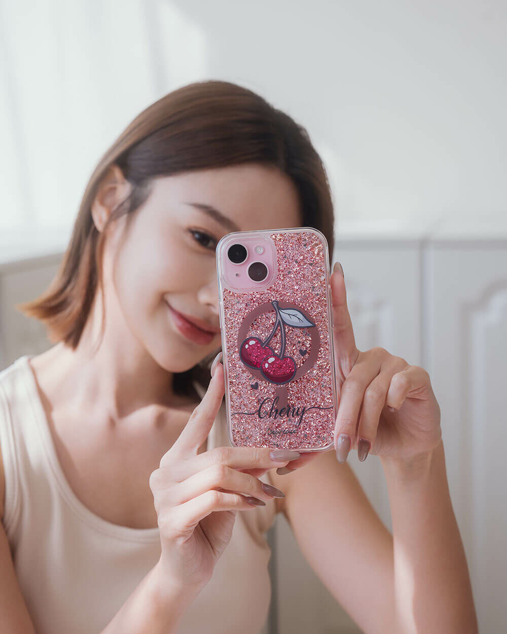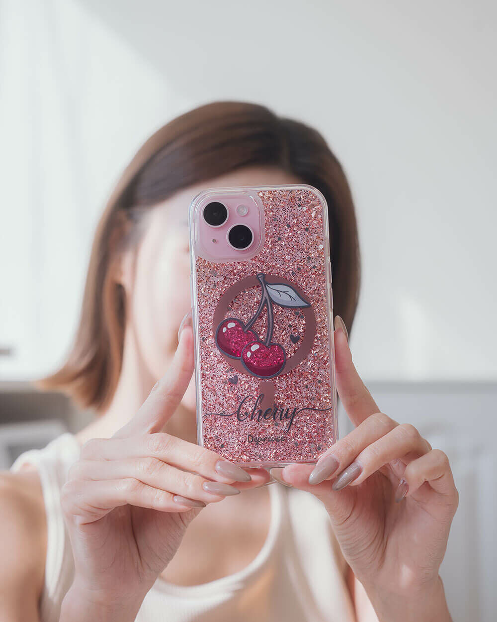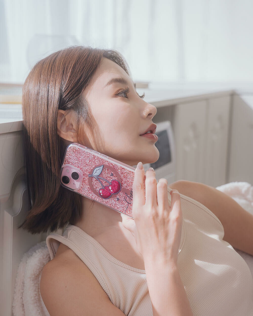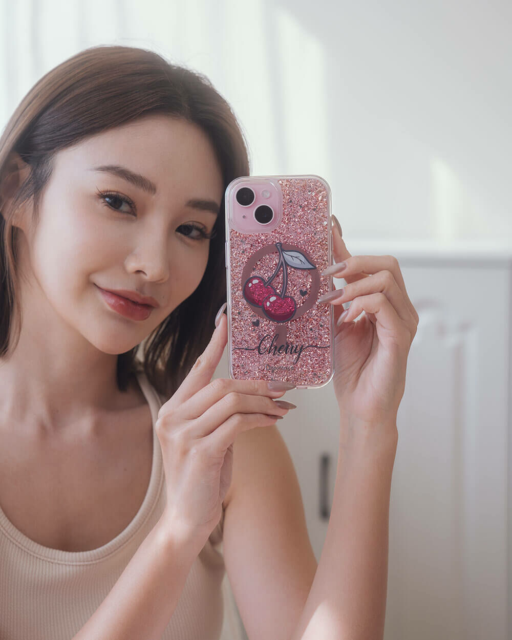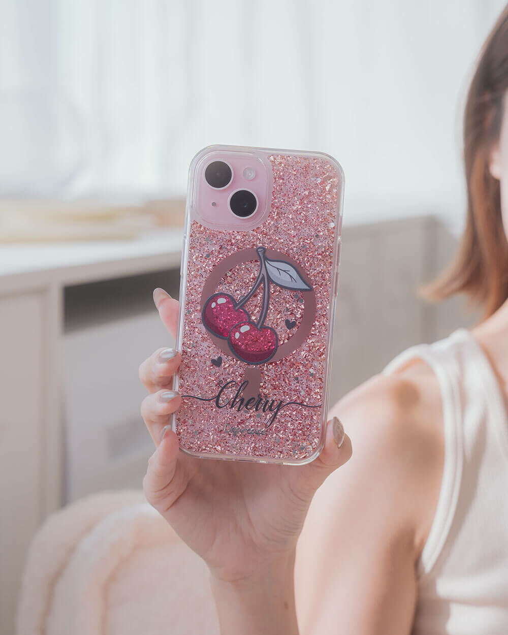 • 手機殼:玫瑰金箔+亮片+磁鐵(MagSafe)