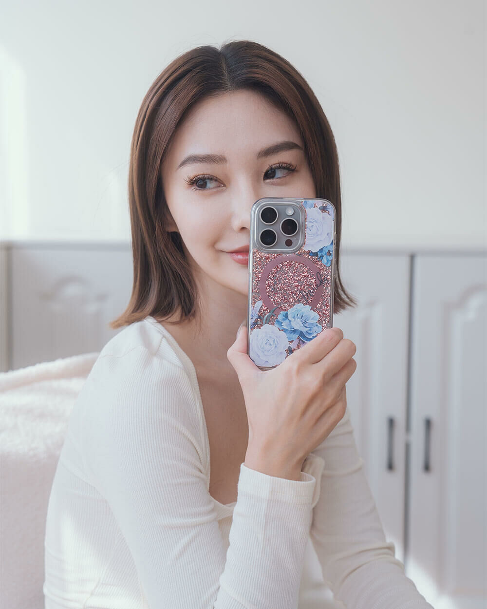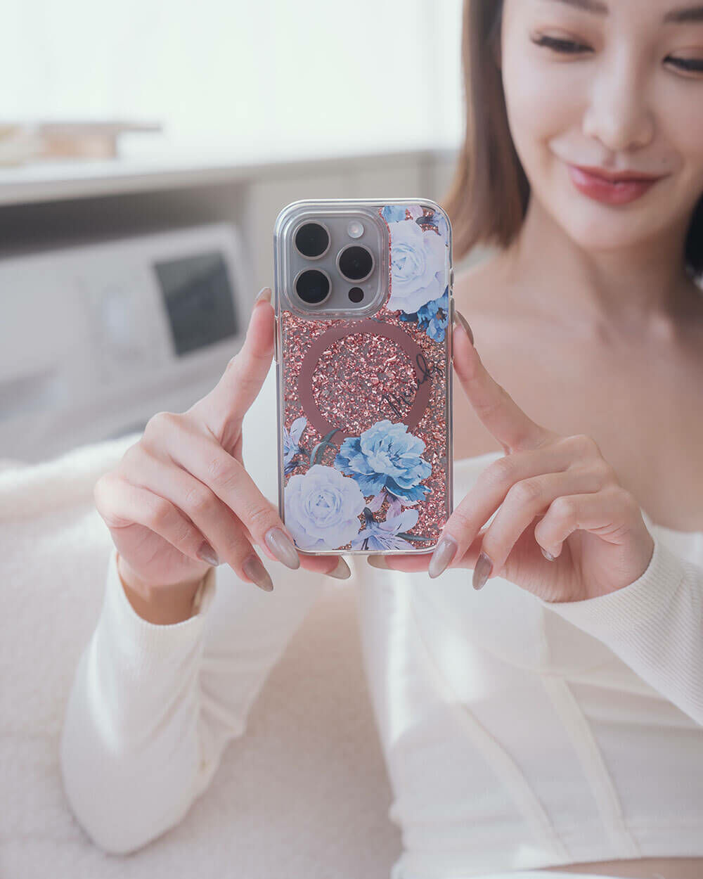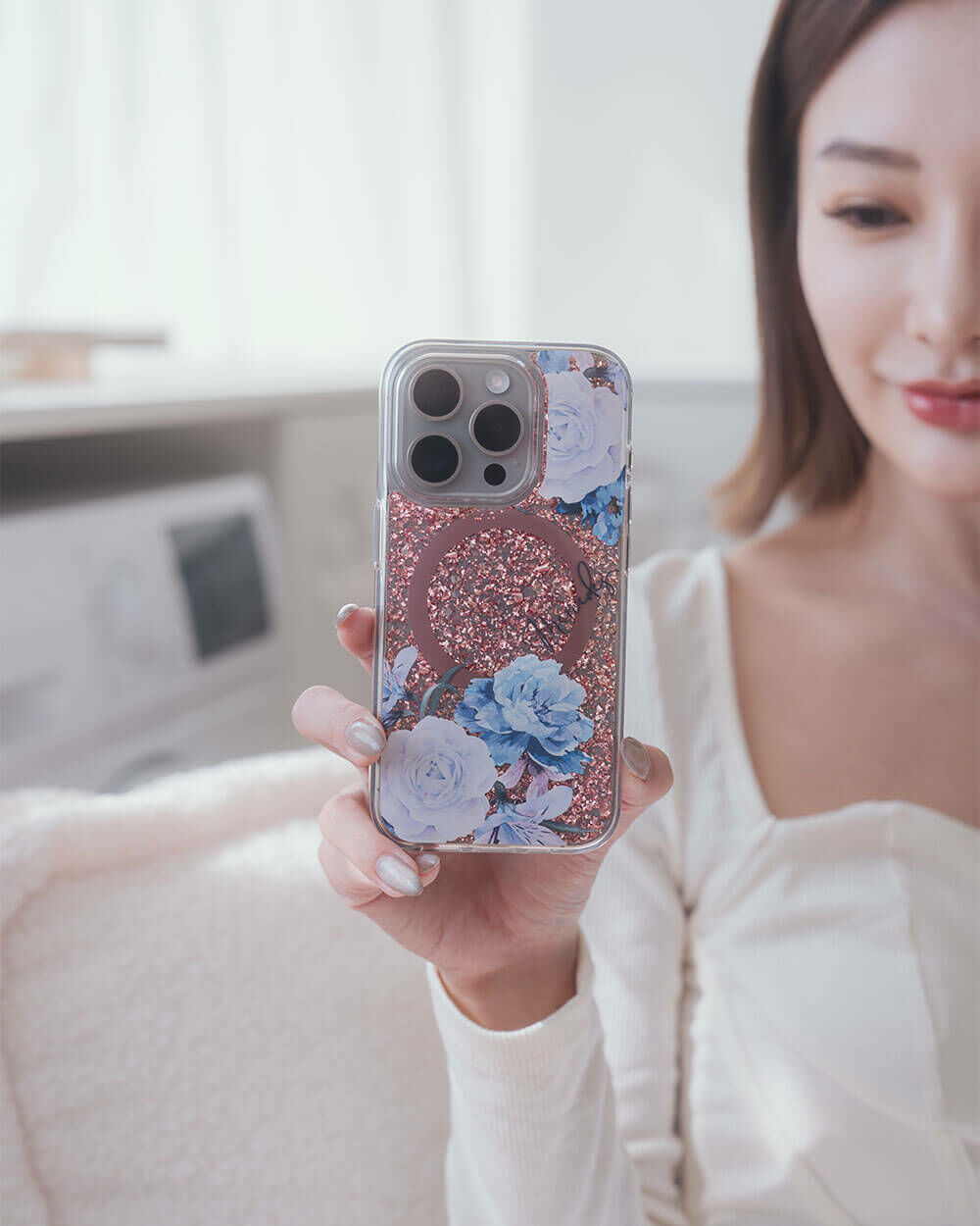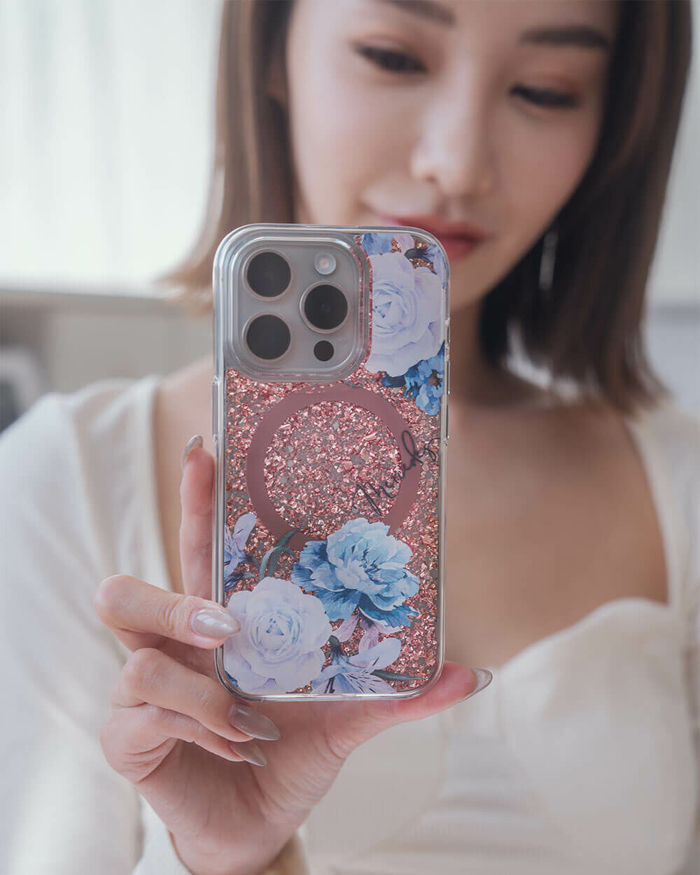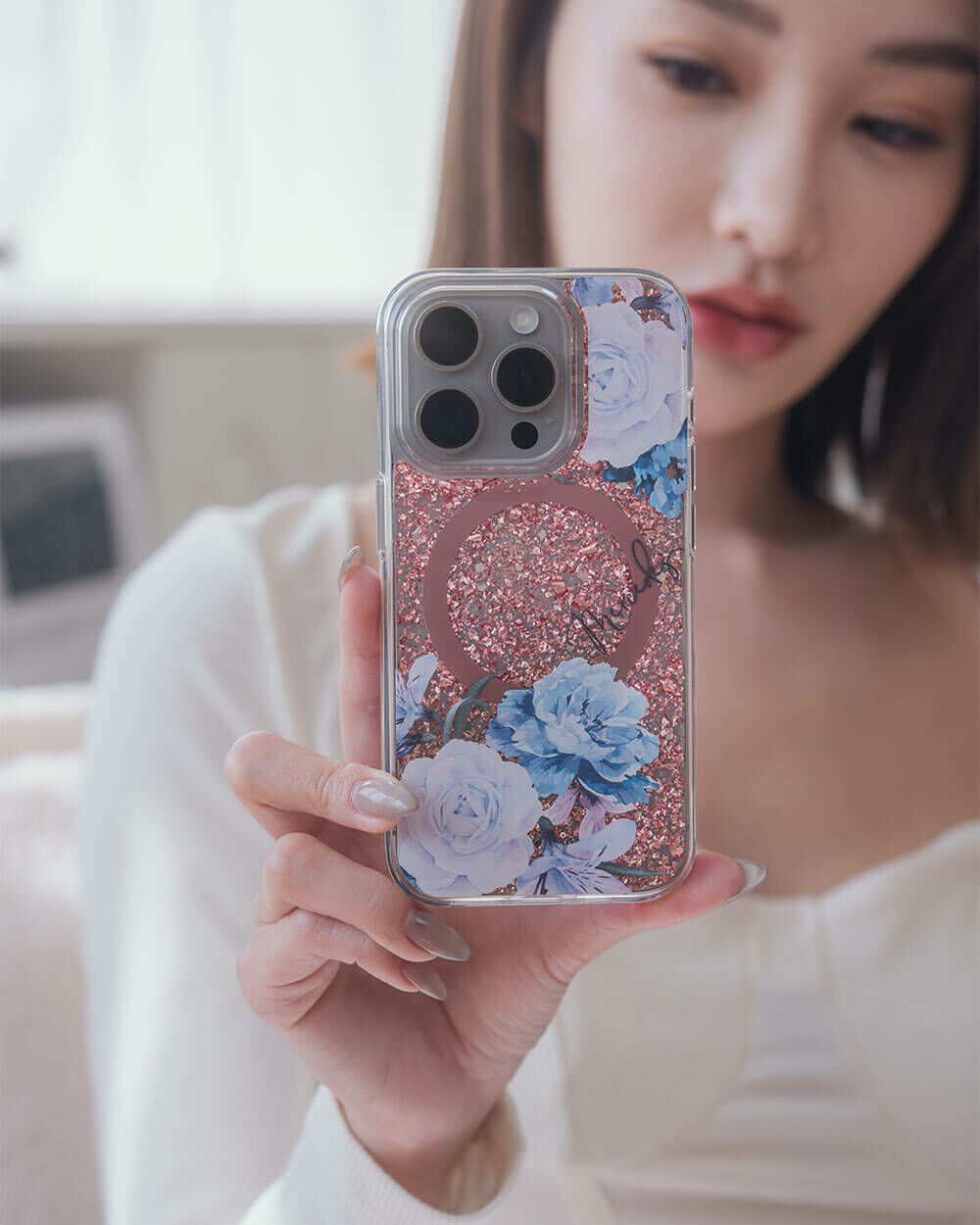 • 手機殼:玫瑰金箔+亮片+磁鐵(MagSafe)