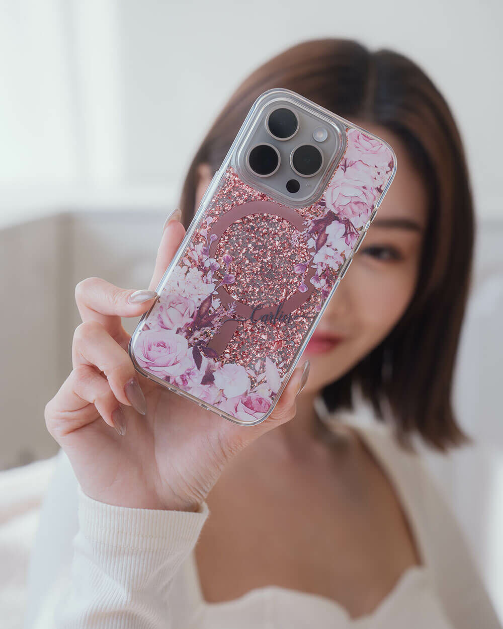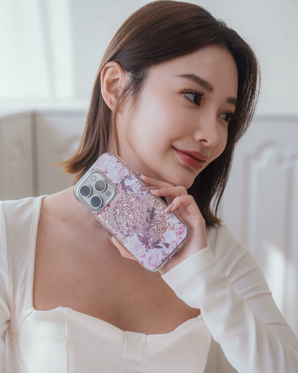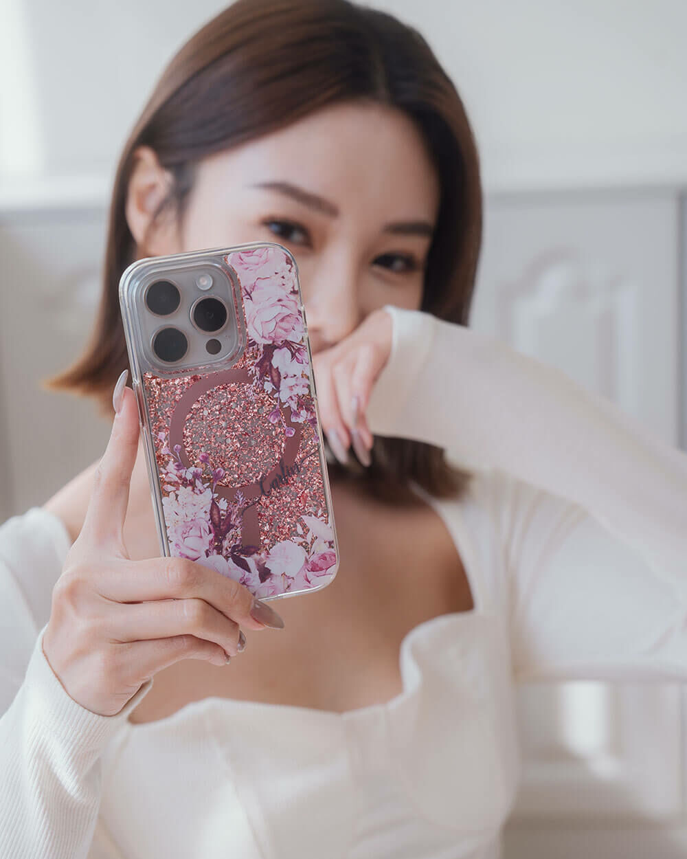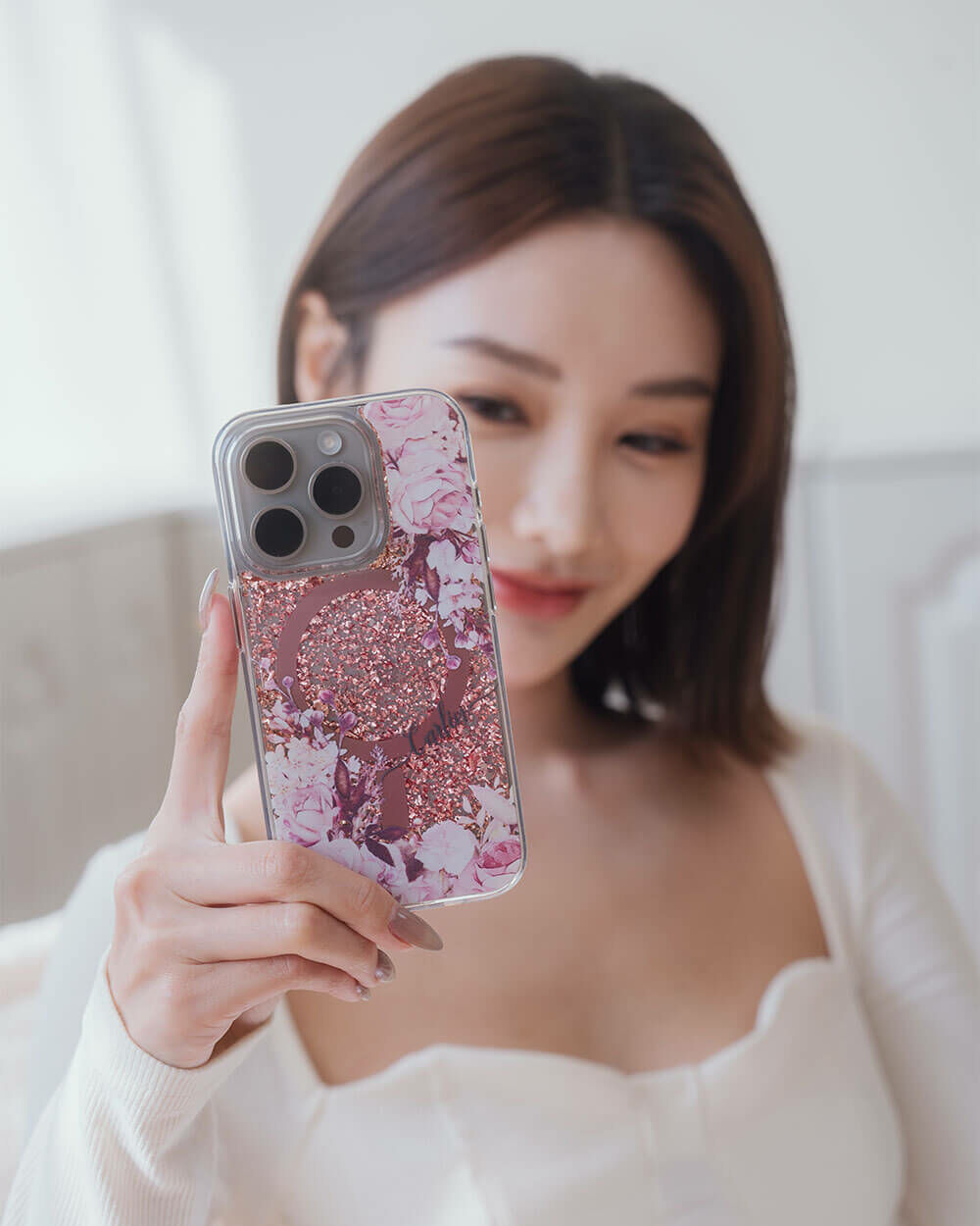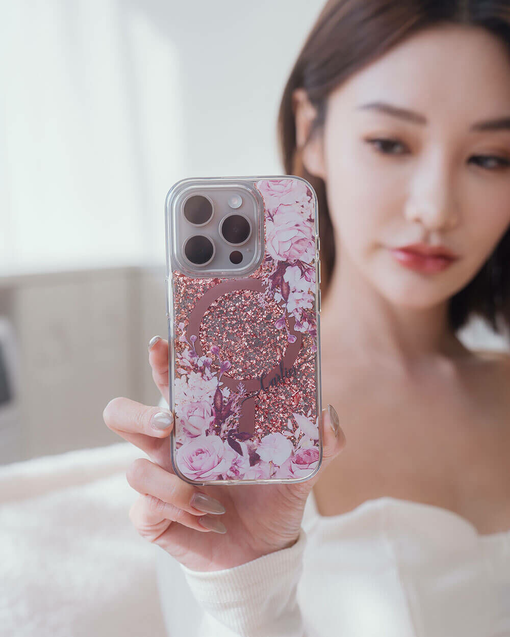 • 手機殼:玫瑰金箔+亮片+磁鐵(MagSafe)