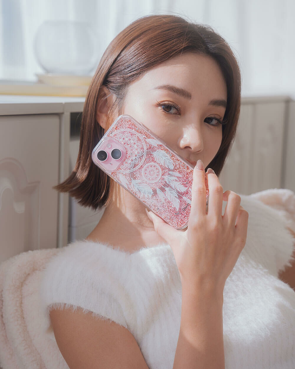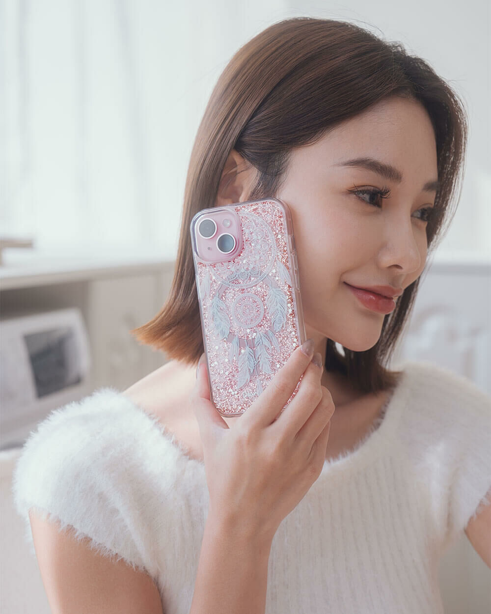 • 手機殼:玫瑰金箔+亮片+磁鐵(MagSafe)