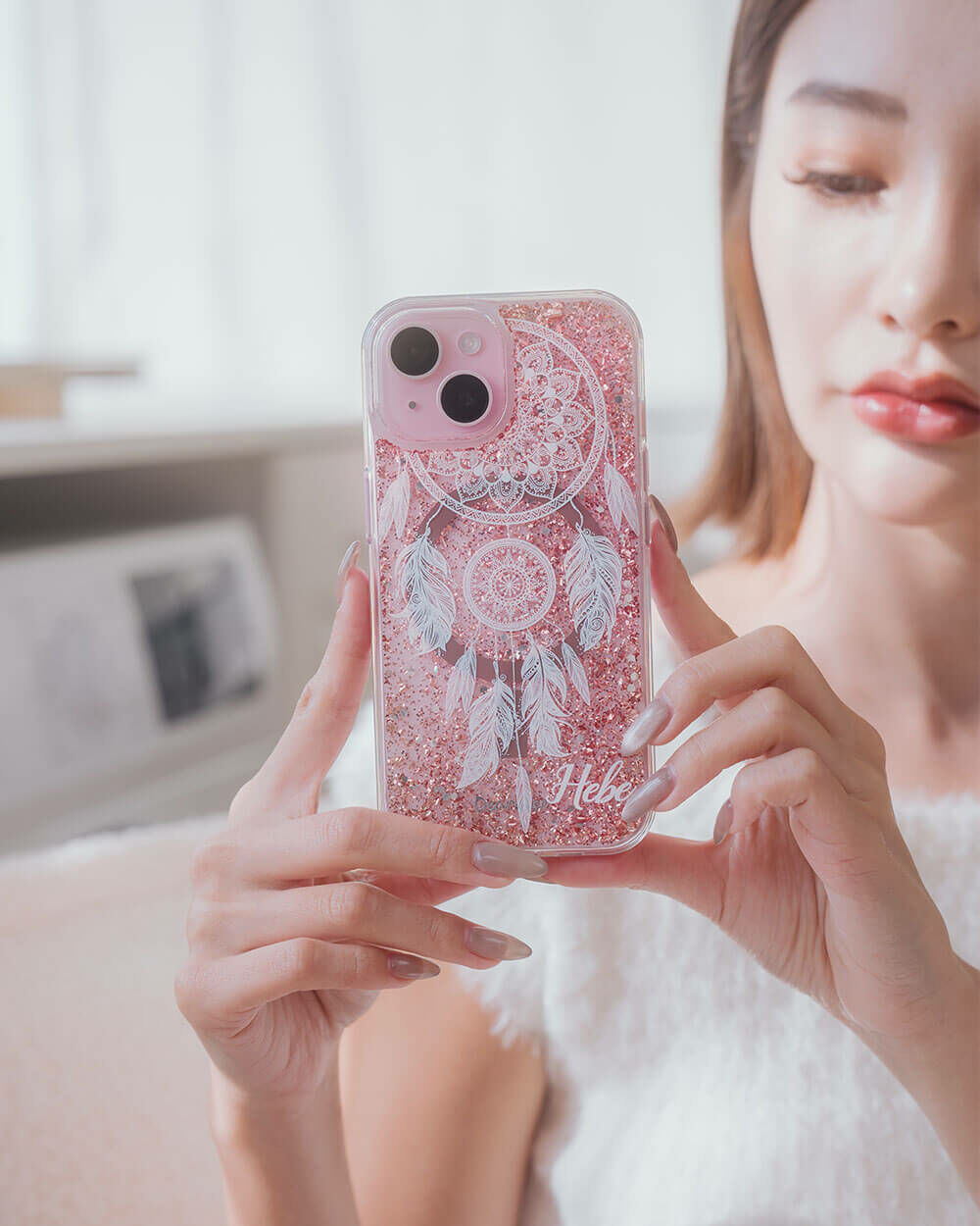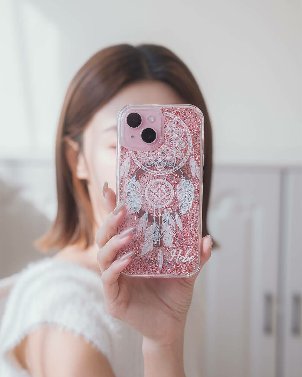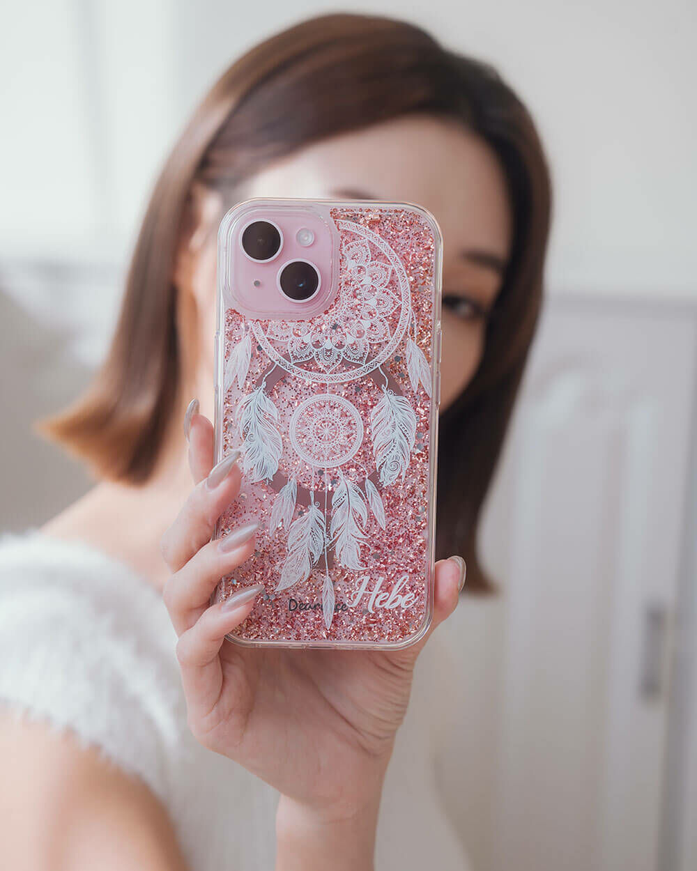 白色捕夢網 玫瑰金貝拉殼 (MagSafe兼容) - (訂製名字) iPhone客製化手機殼