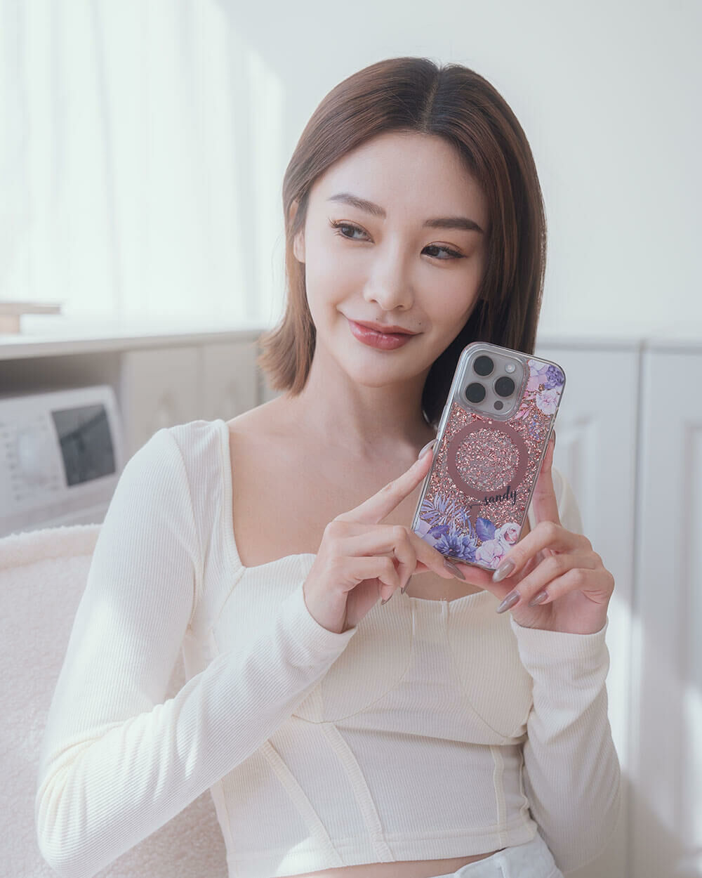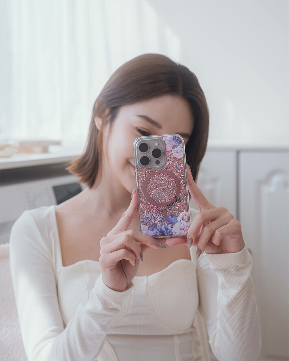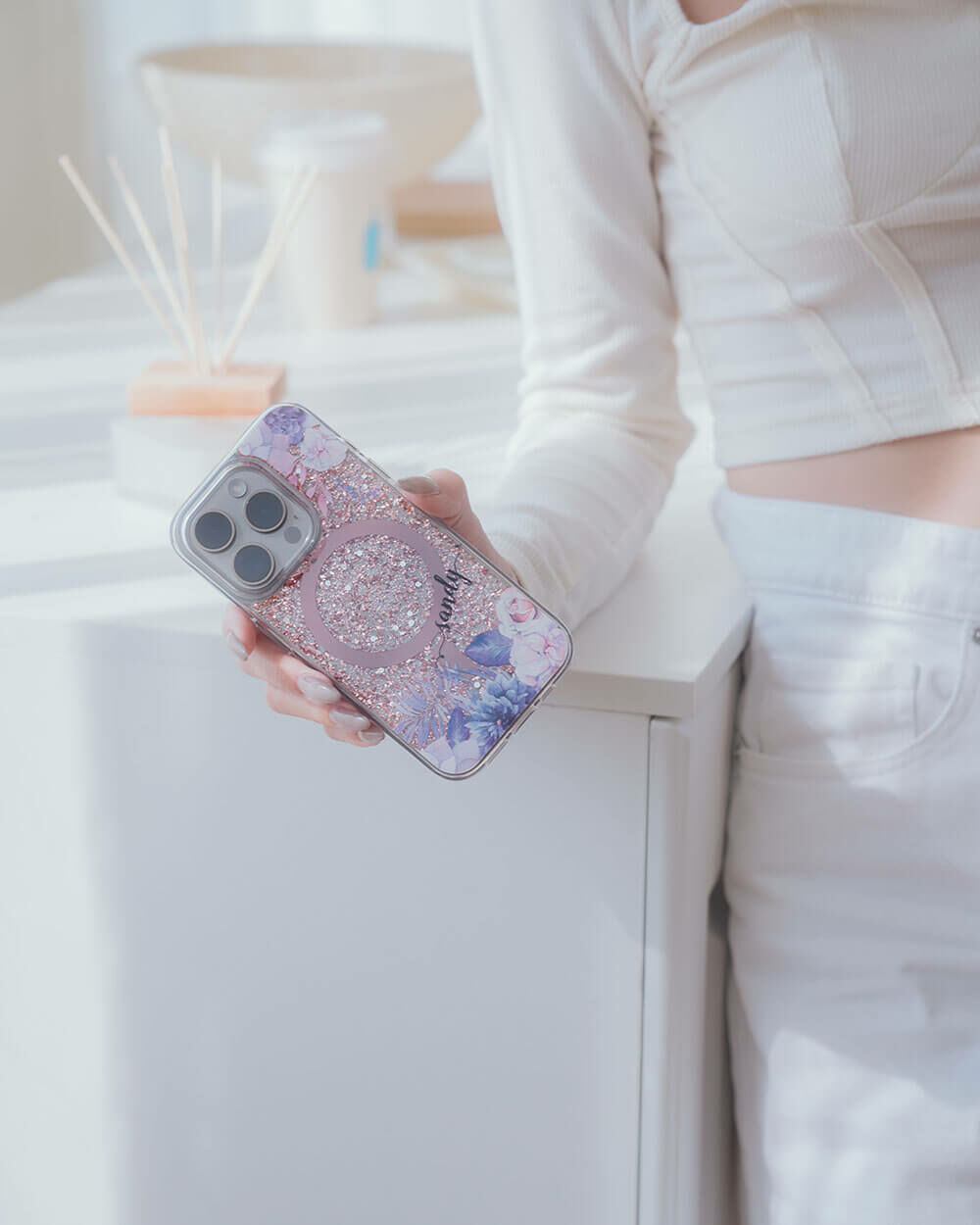 • 手機殼:玫瑰金箔+亮片+磁鐵(MagSafe)