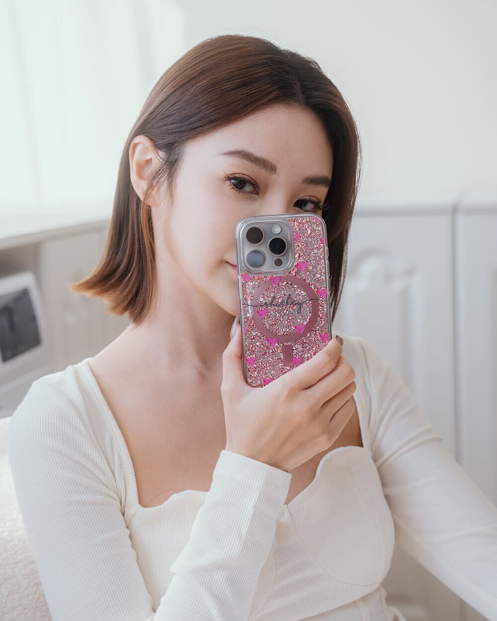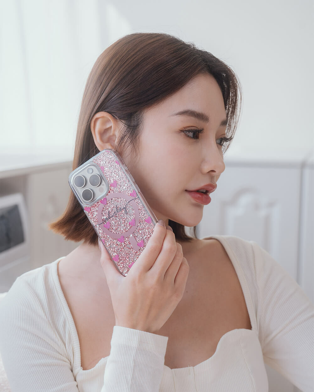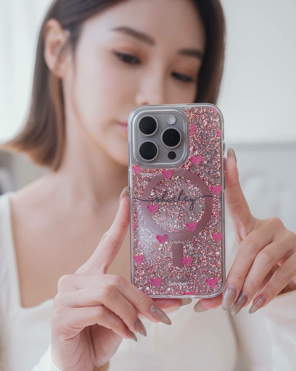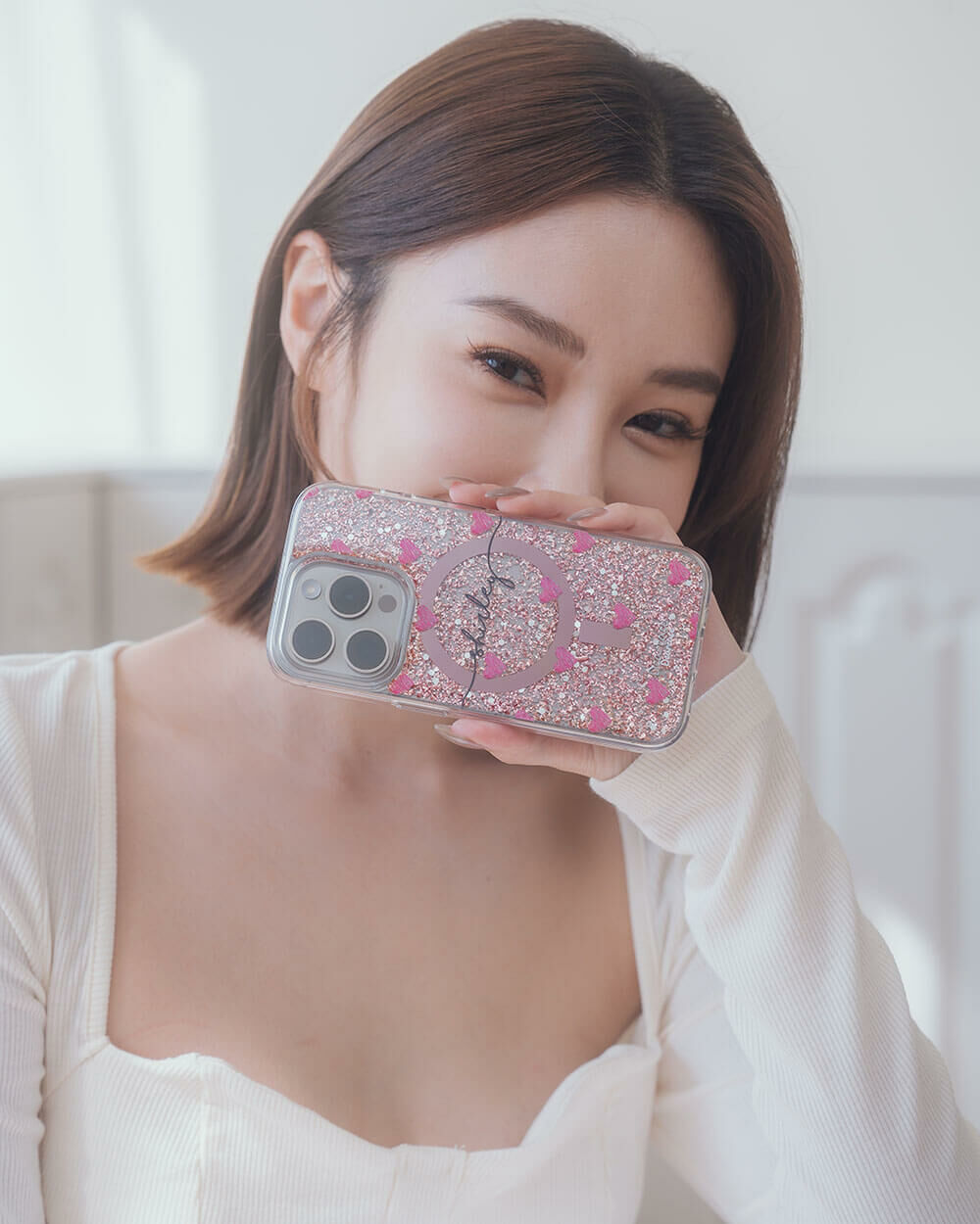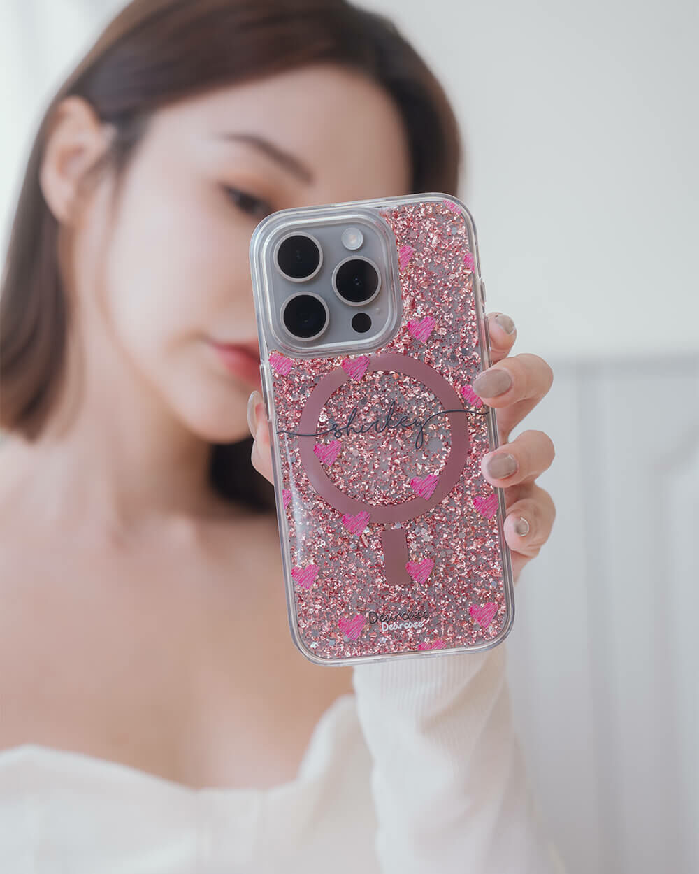 • 手機殼:玫瑰金箔+亮片+磁鐵(MagSafe)