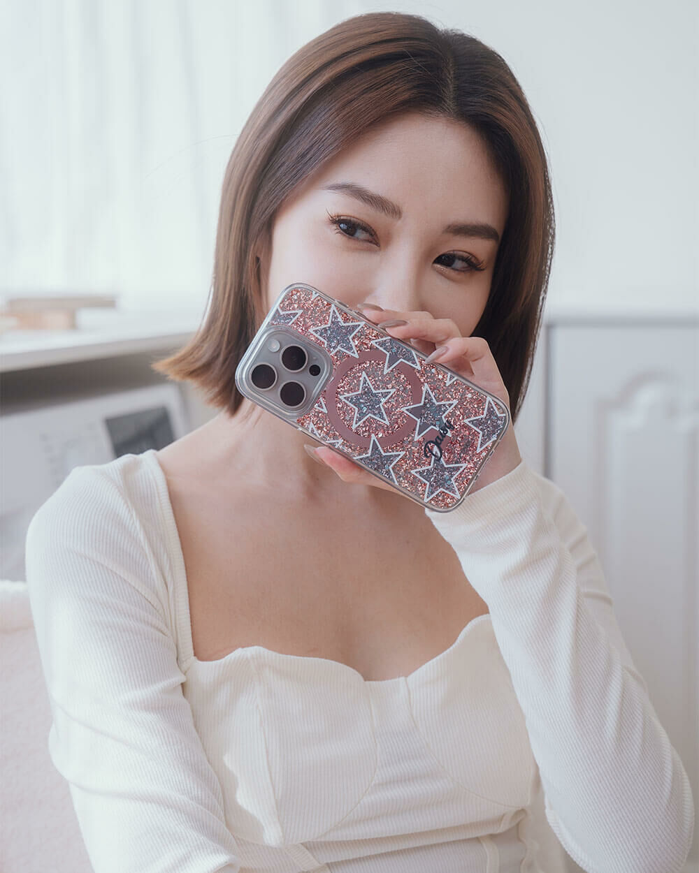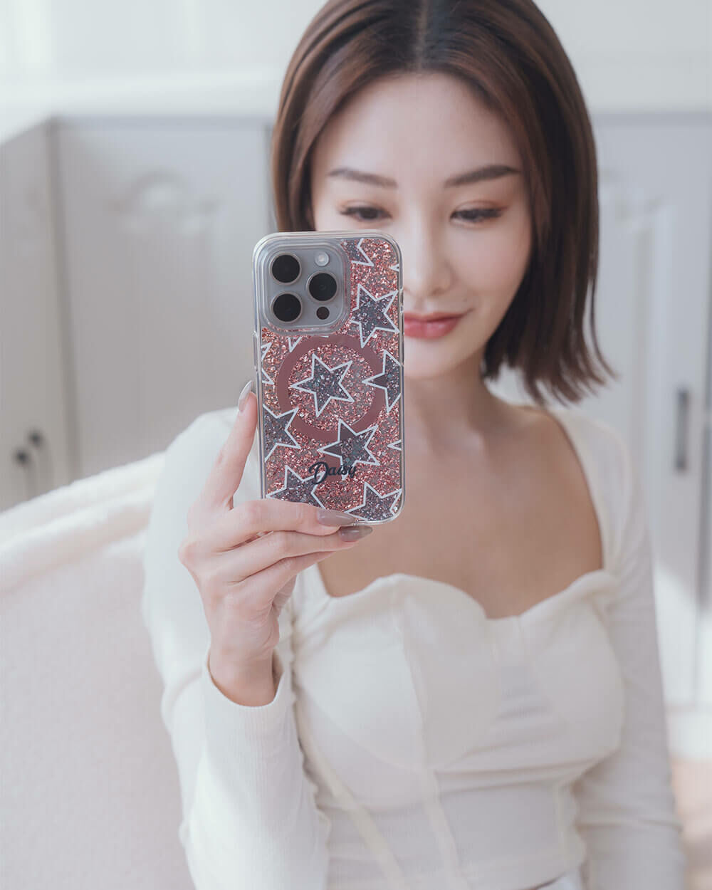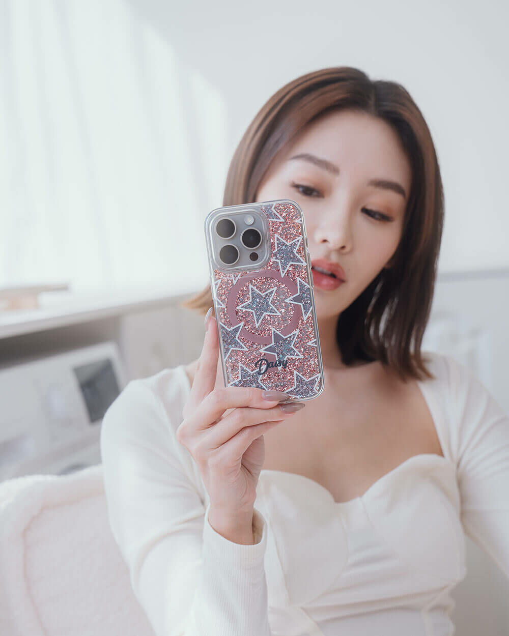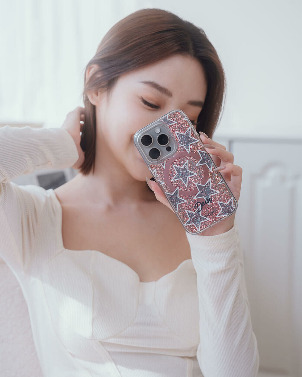 • 手機殼:玫瑰金箔+亮片+磁鐵(MagSafe)
