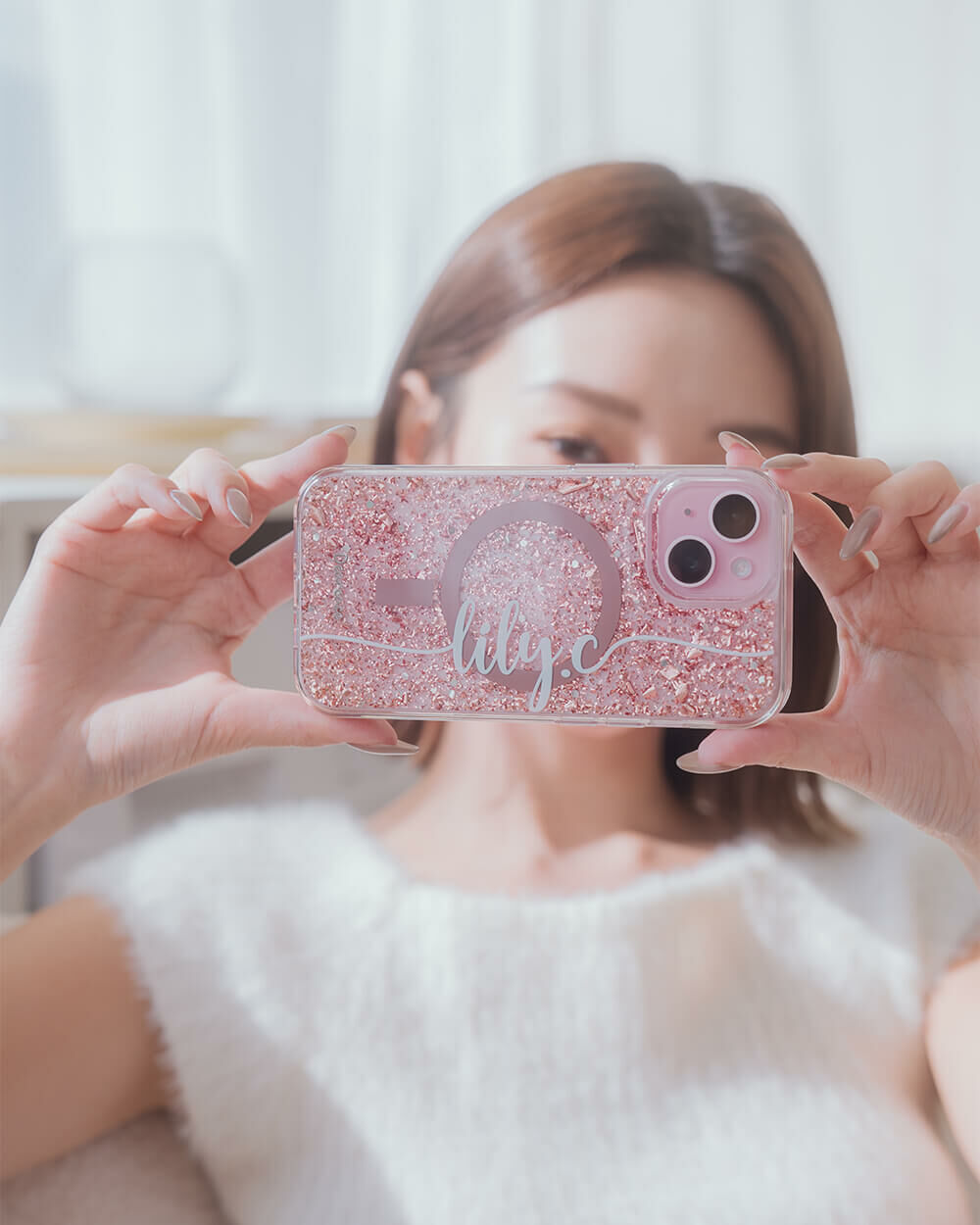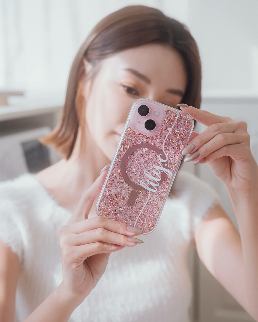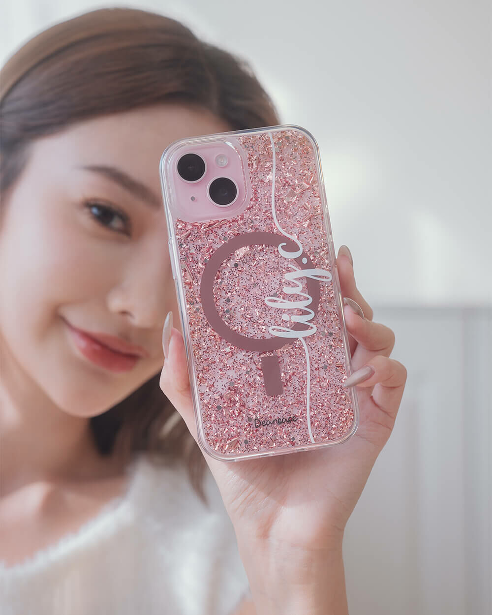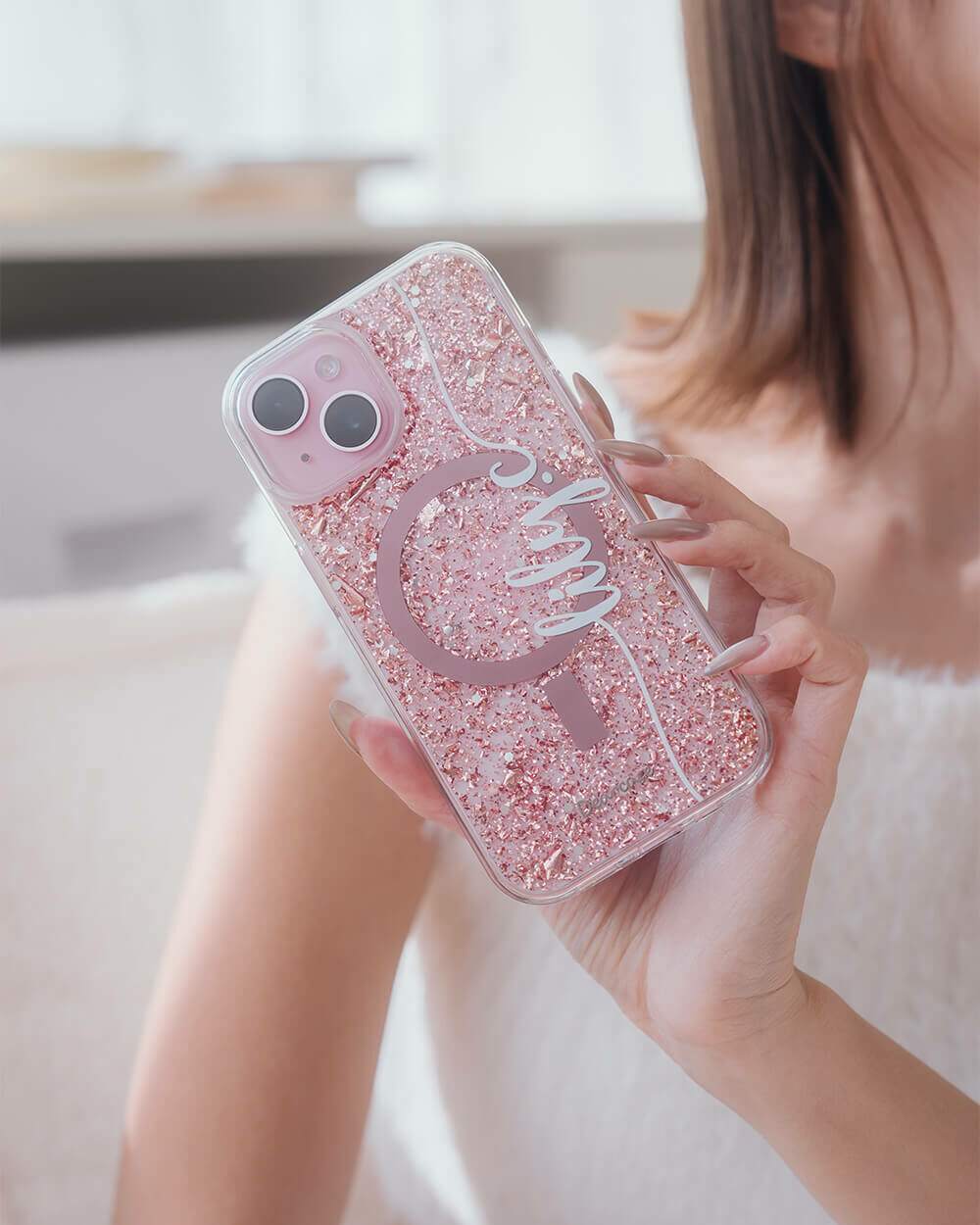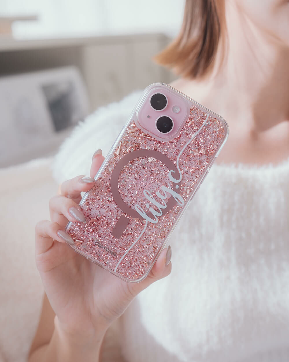 • 手機殼:玫瑰金箔+亮片+磁鐵(MagSafe)