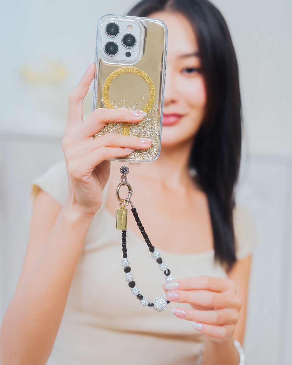 氣質冰塊水晶鑽 (黑色) 串珠手腕繩 短掛繩 串珠掛繩 手機掛繩
