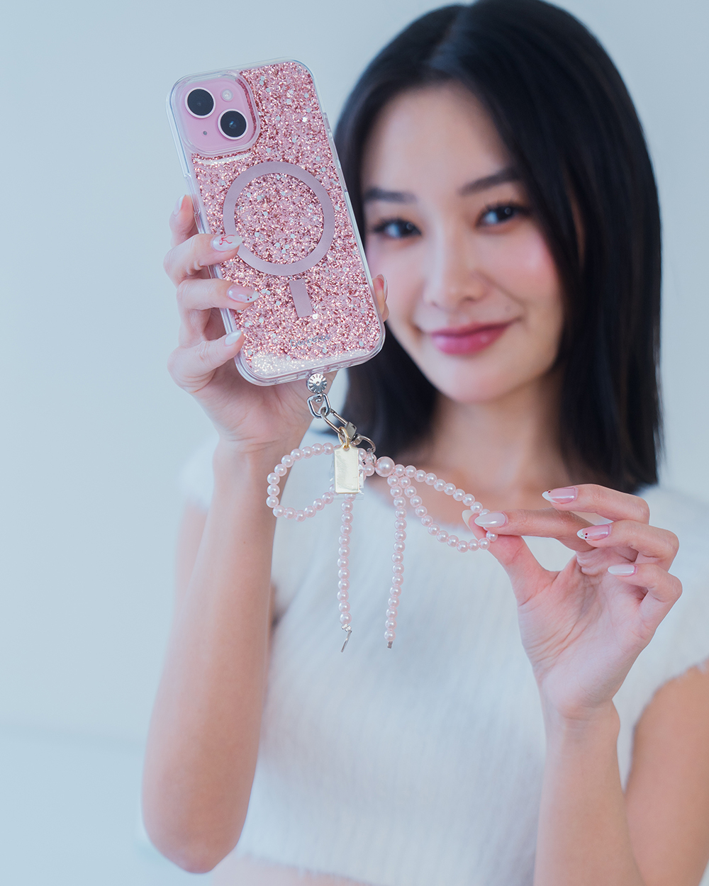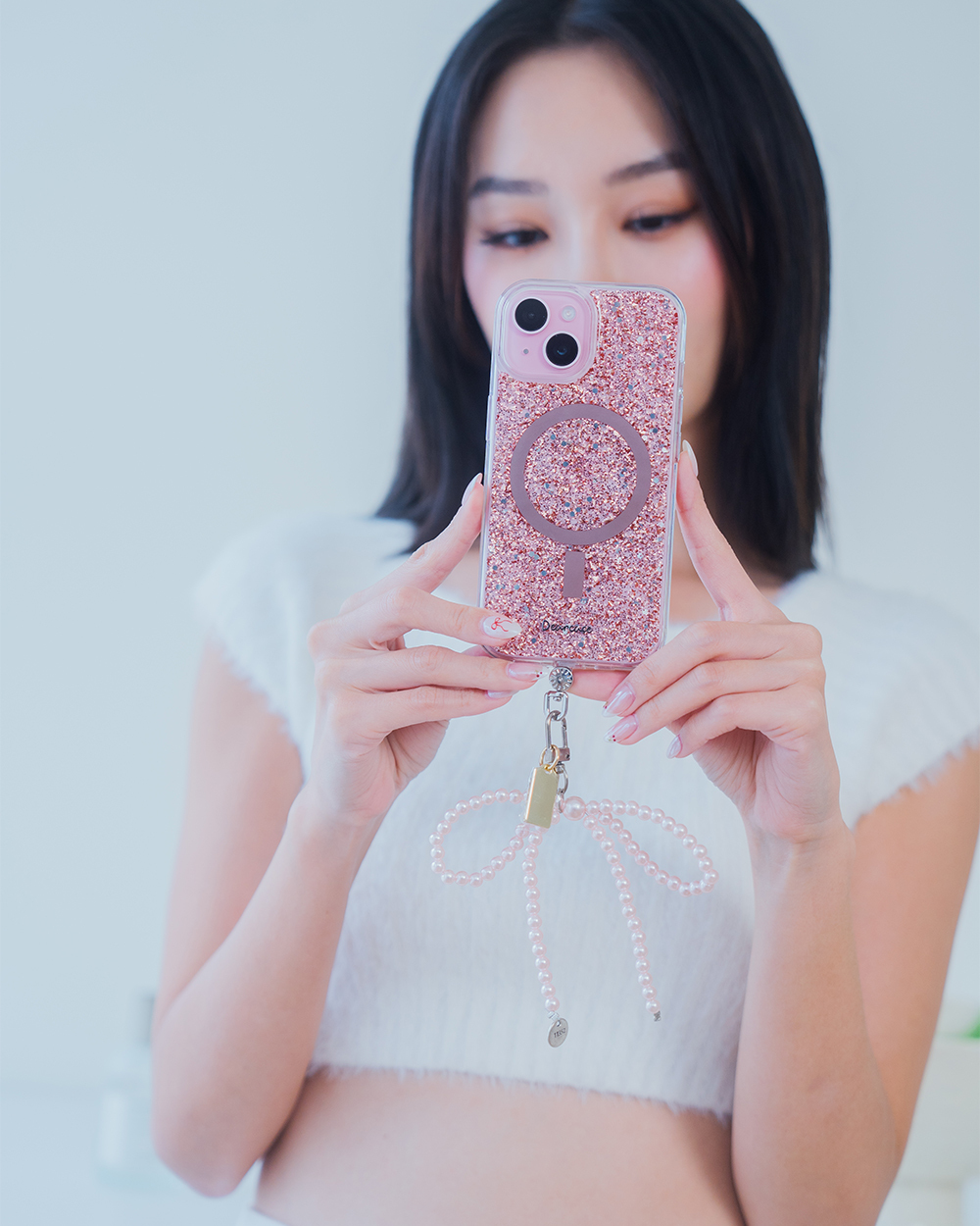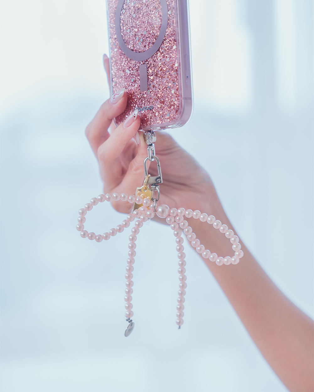 浪漫珍珠粉蝴蝶結 手機吊飾 串珠掛飾