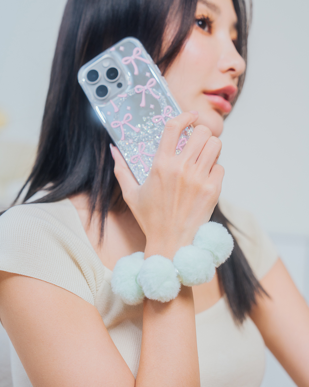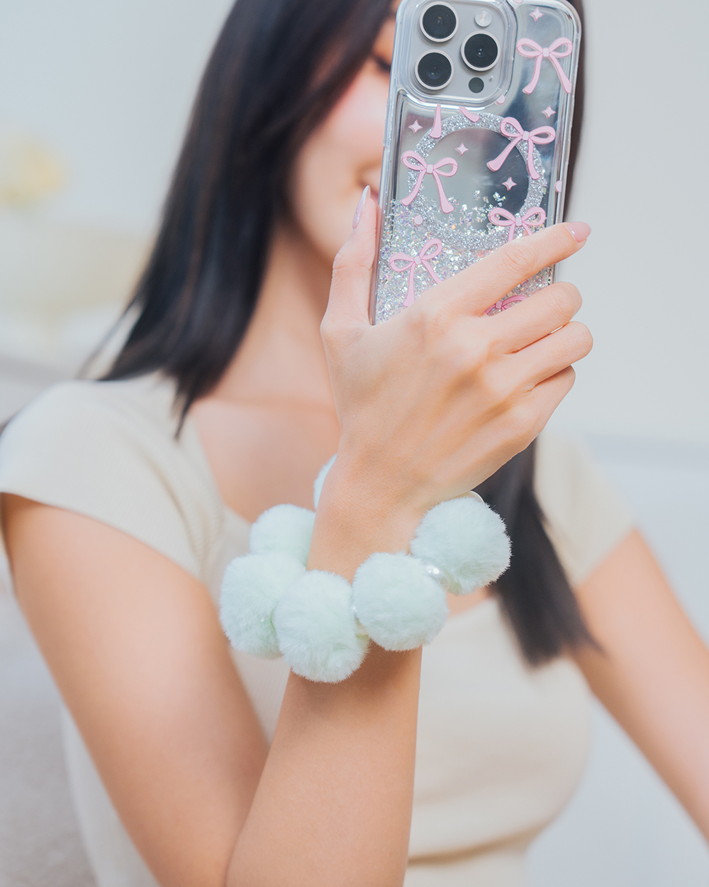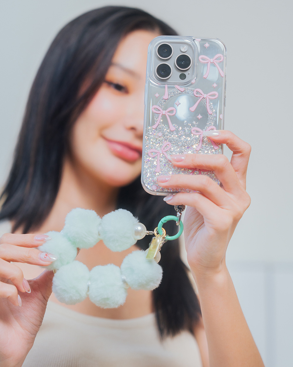 可愛絨毛球珍珠 (蘋果綠) 手腕繩 短掛繩 手機掛繩 毛球 手機提鍊