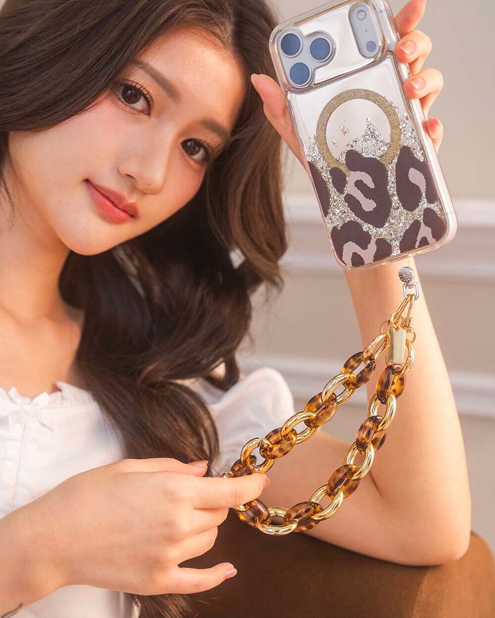 琥珀豹紋古巴鏈條 手腕繩 短掛繩 掛繩