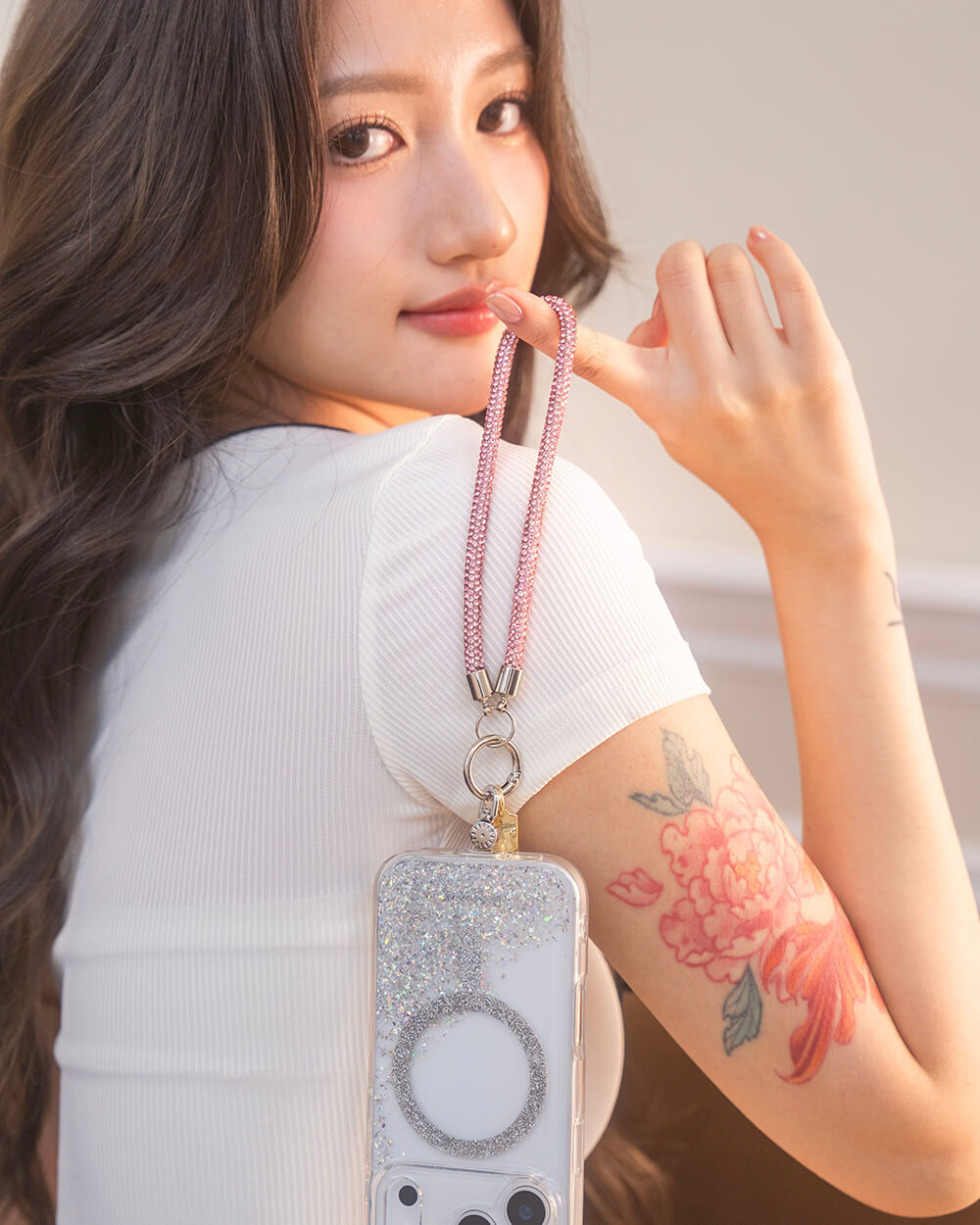 閃耀細鑽 (莓粉色) 水鑽手腕繩 短掛繩 手機掛繩