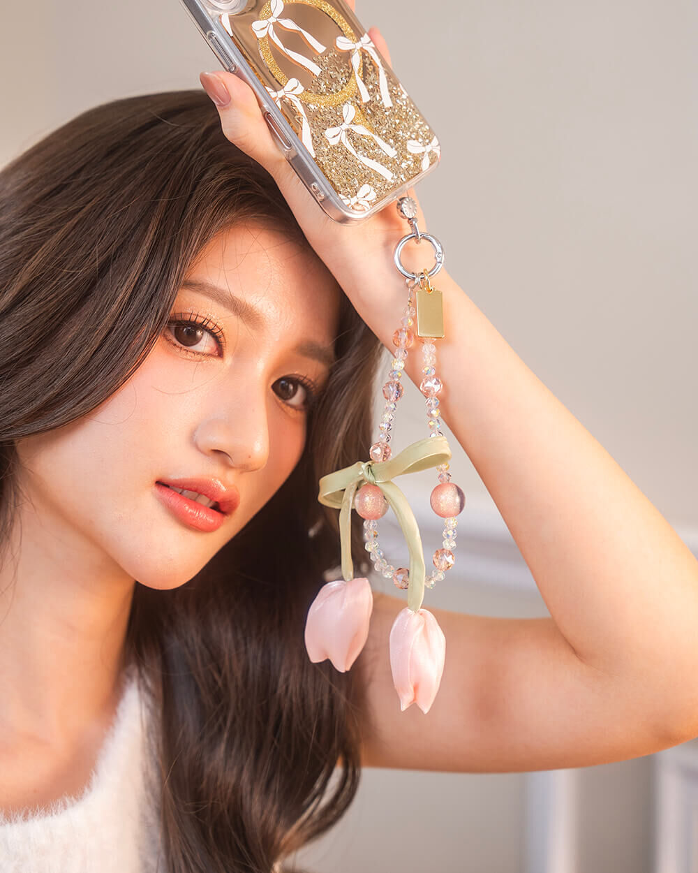 浪漫貓眼鬱金香 (粉) 串珠手腕繩 短掛繩 手機掛繩
