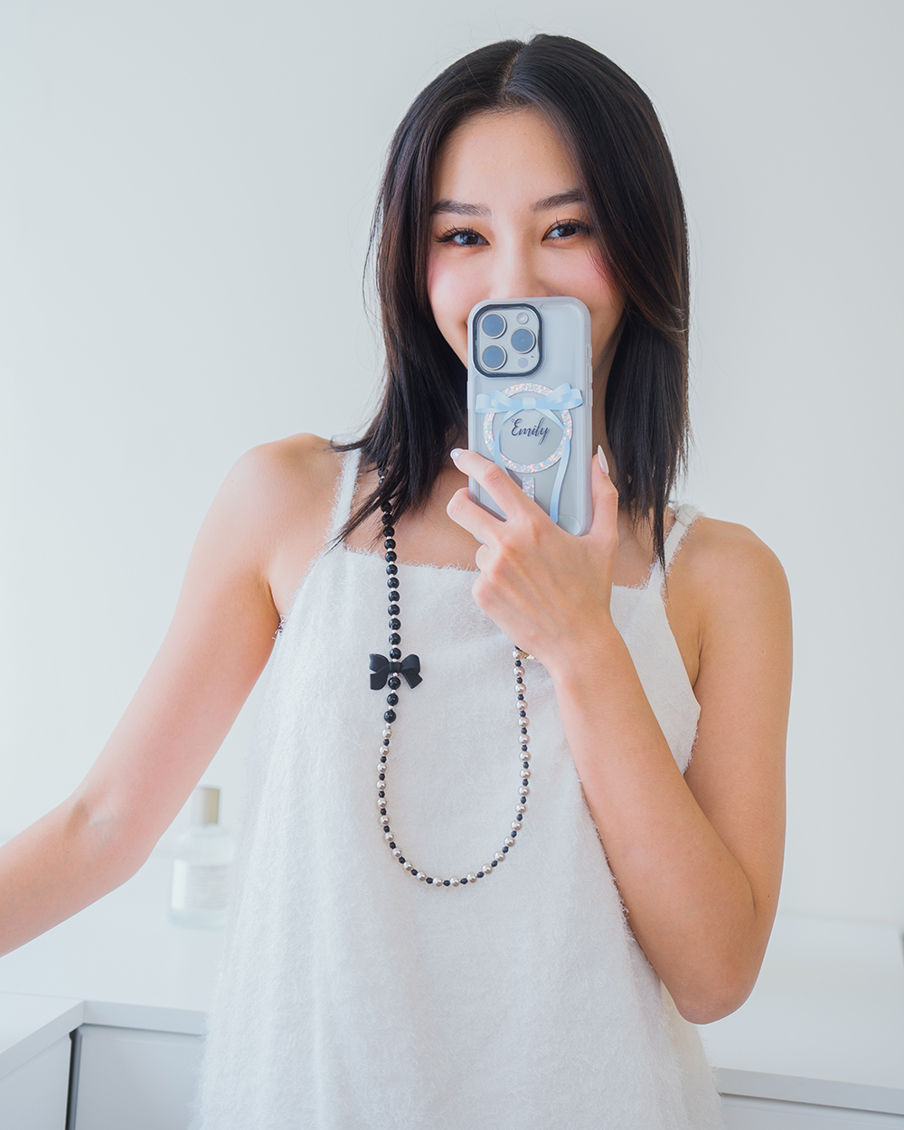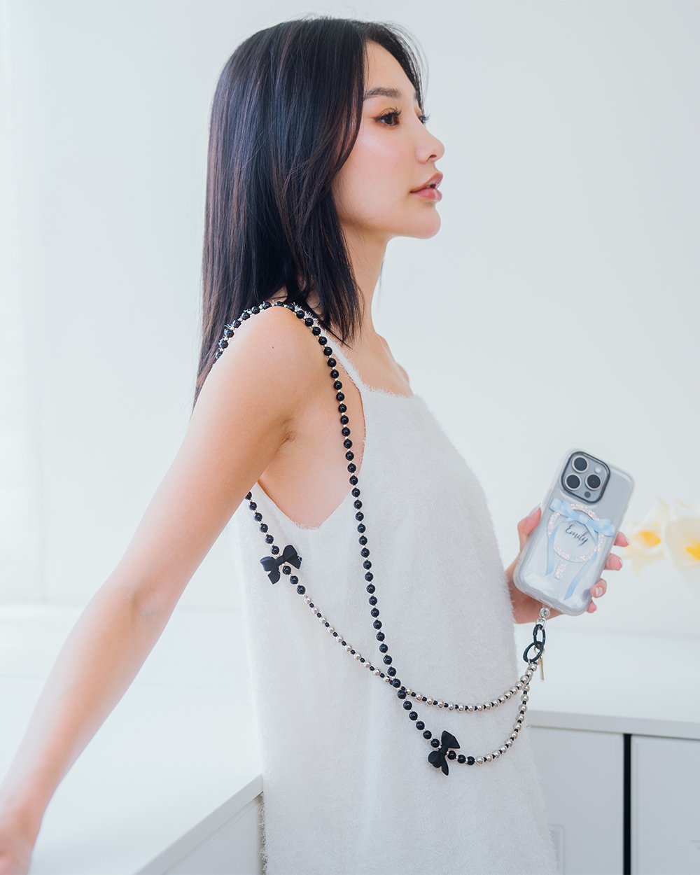 經典黑銀色串珠搭配與黑色蝴蝶結穿插✨
