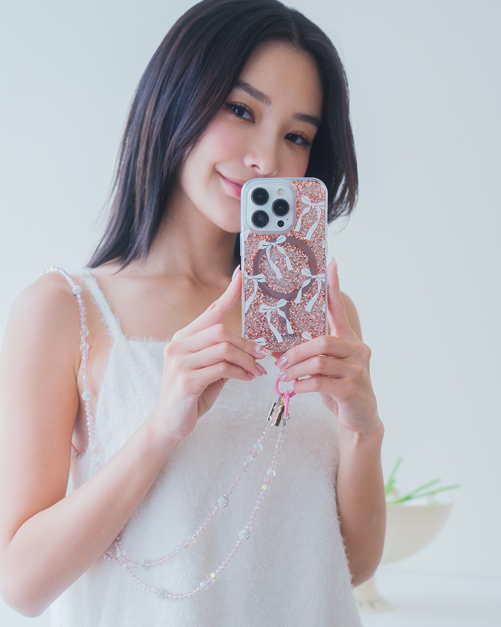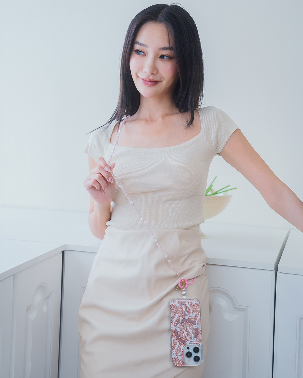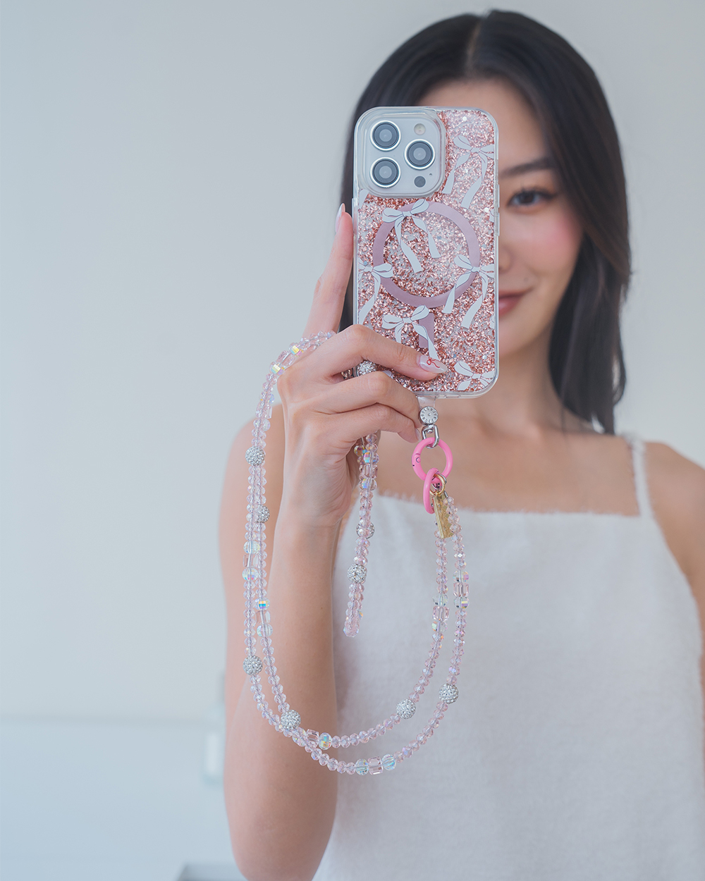 氣質方圓鑲鑽 (透粉) 手機掛繩 串珠掛繩 長掛繩 背帶
