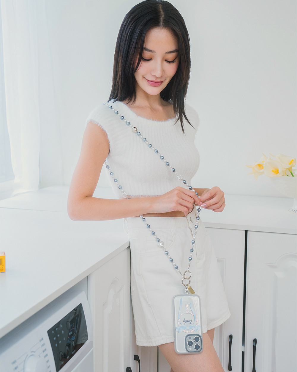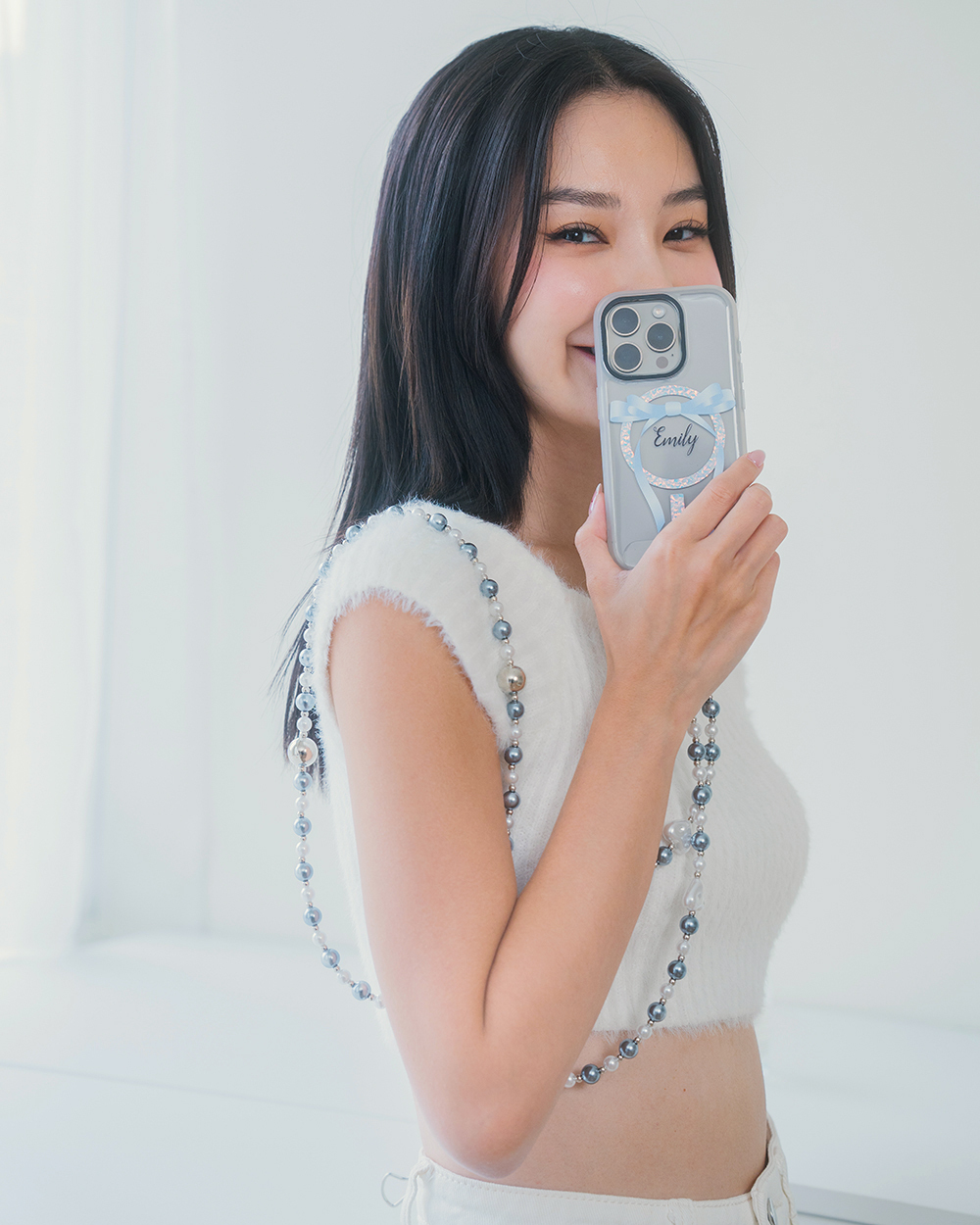 寶藏藍灰珍珠 手機掛繩 串珠掛繩 長掛繩 背帶
