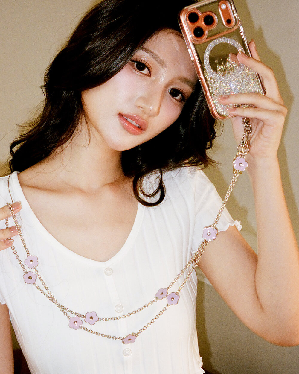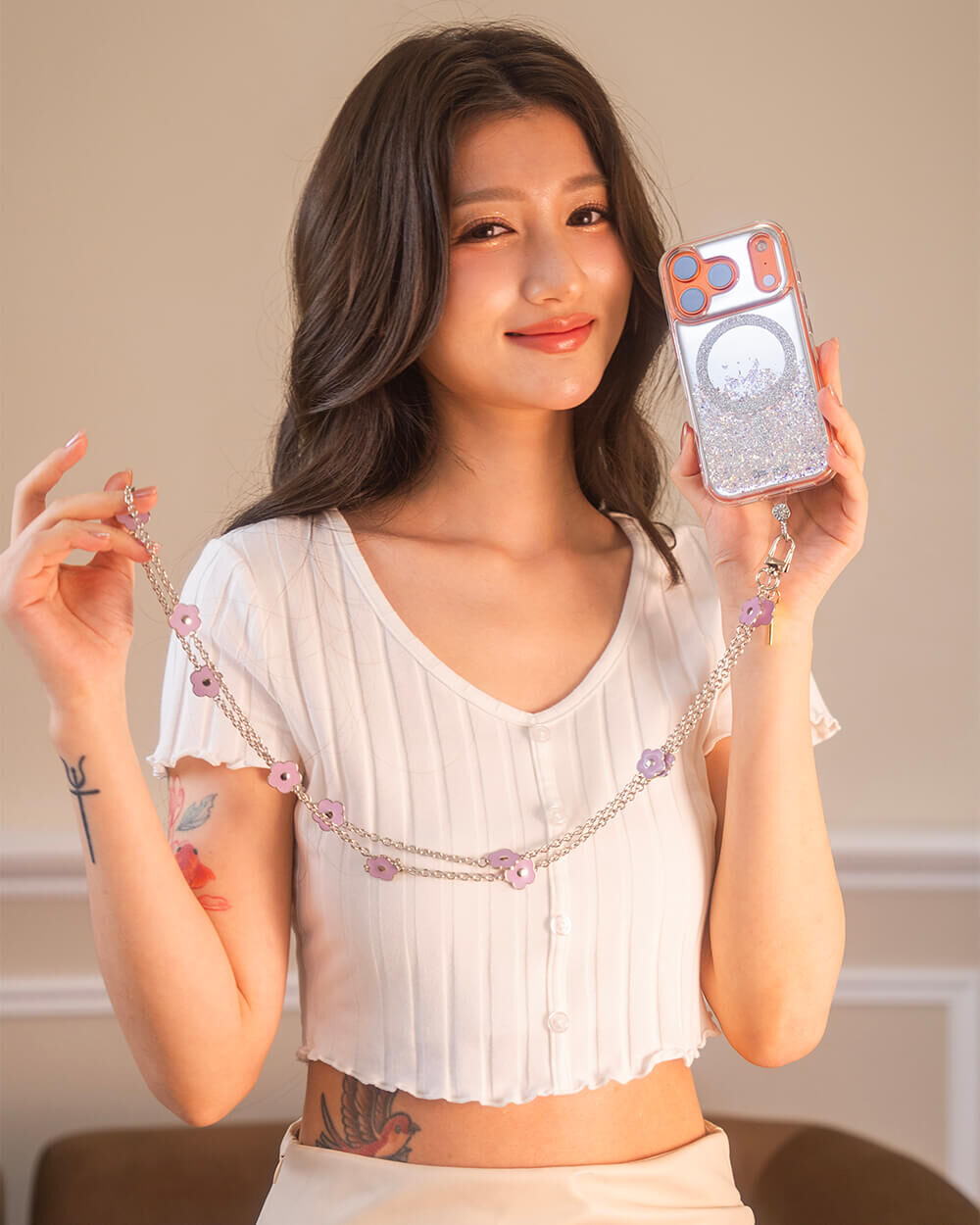 可愛花朵銀鍊 (紫) 手機掛繩 串珠掛繩 長掛繩 背帶