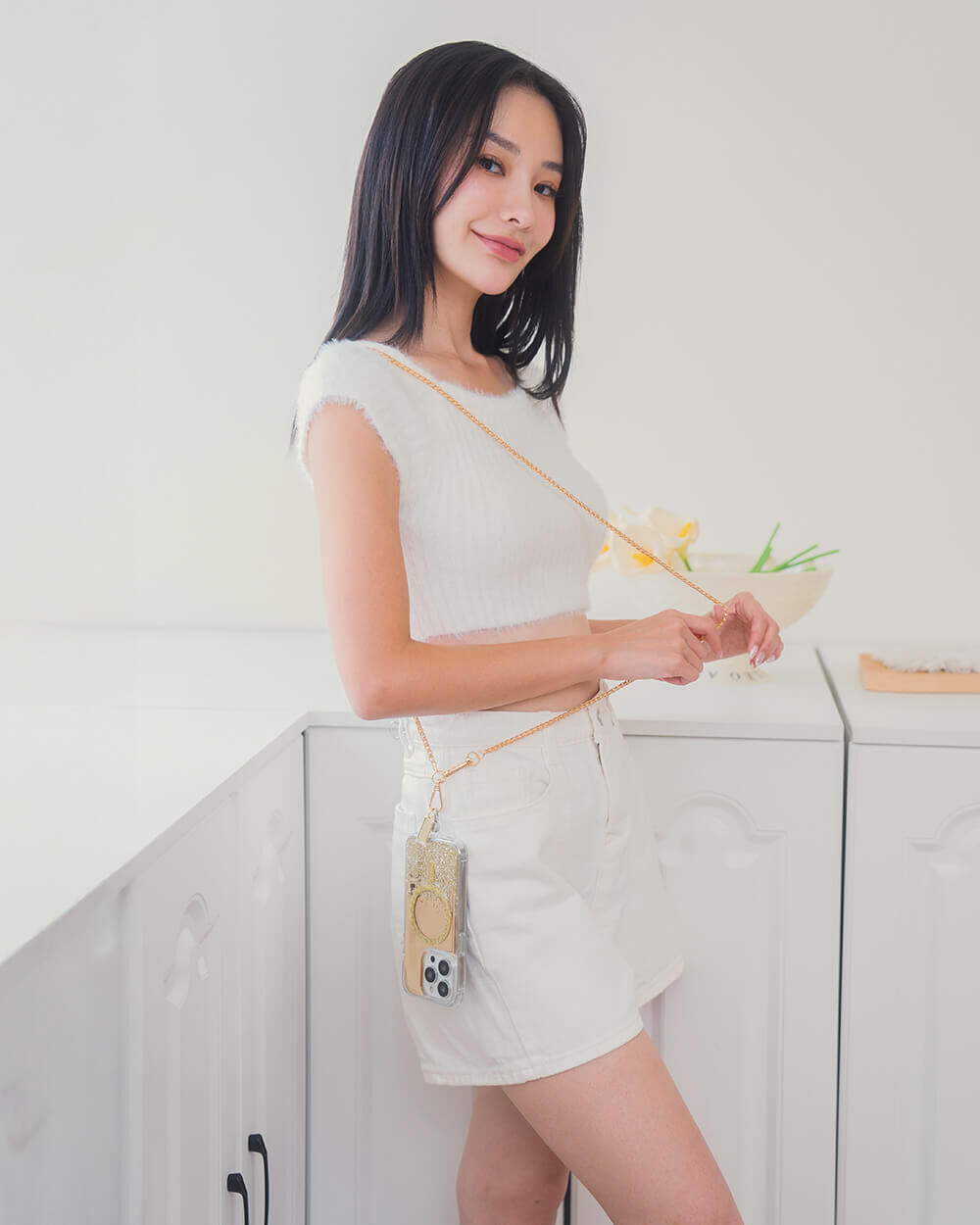 俐落金色長鏈 手機掛繩 串珠掛繩 長掛繩 背帶