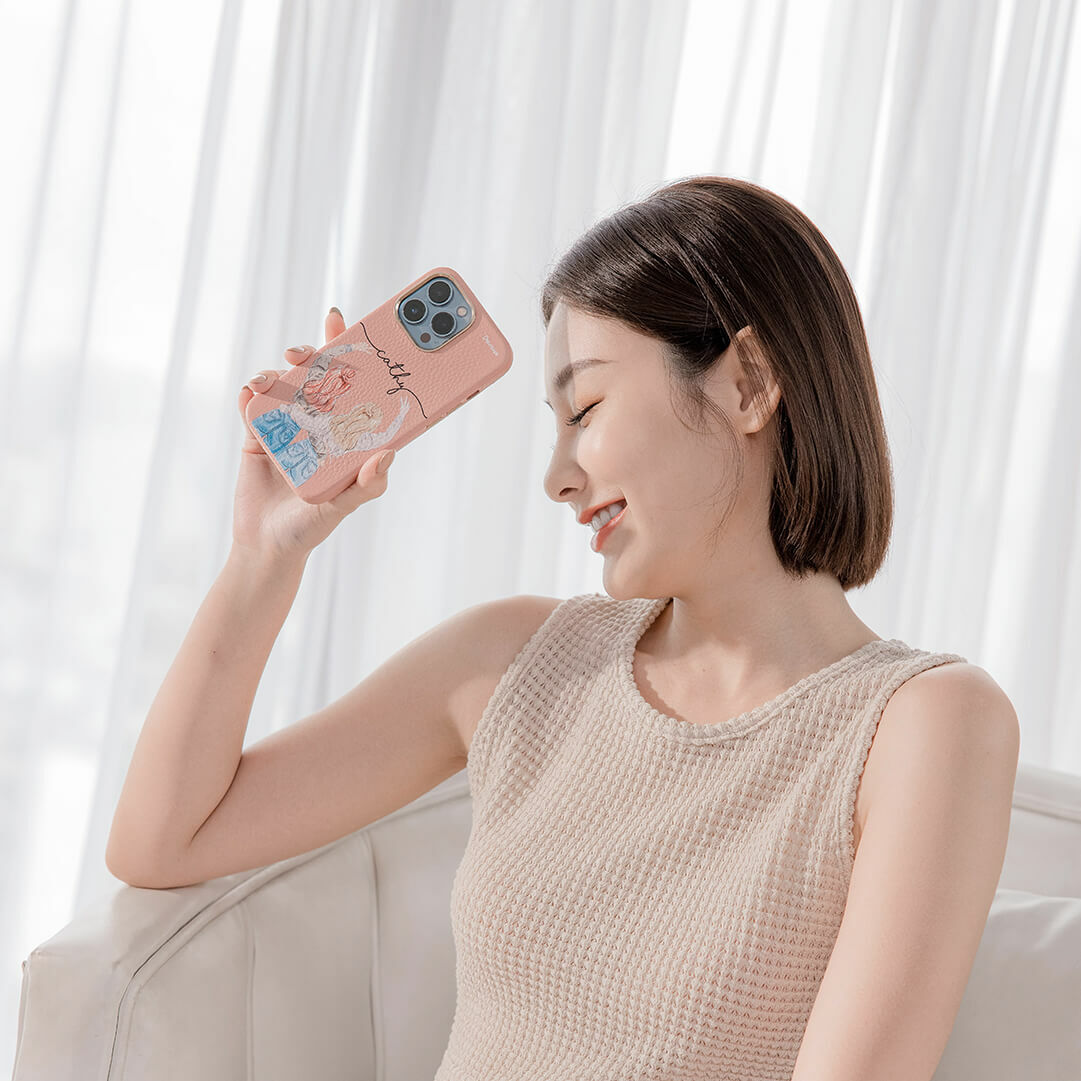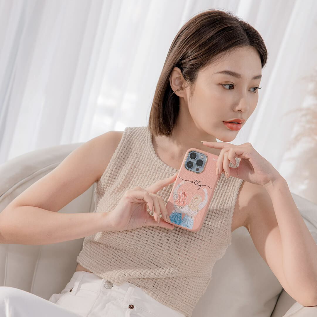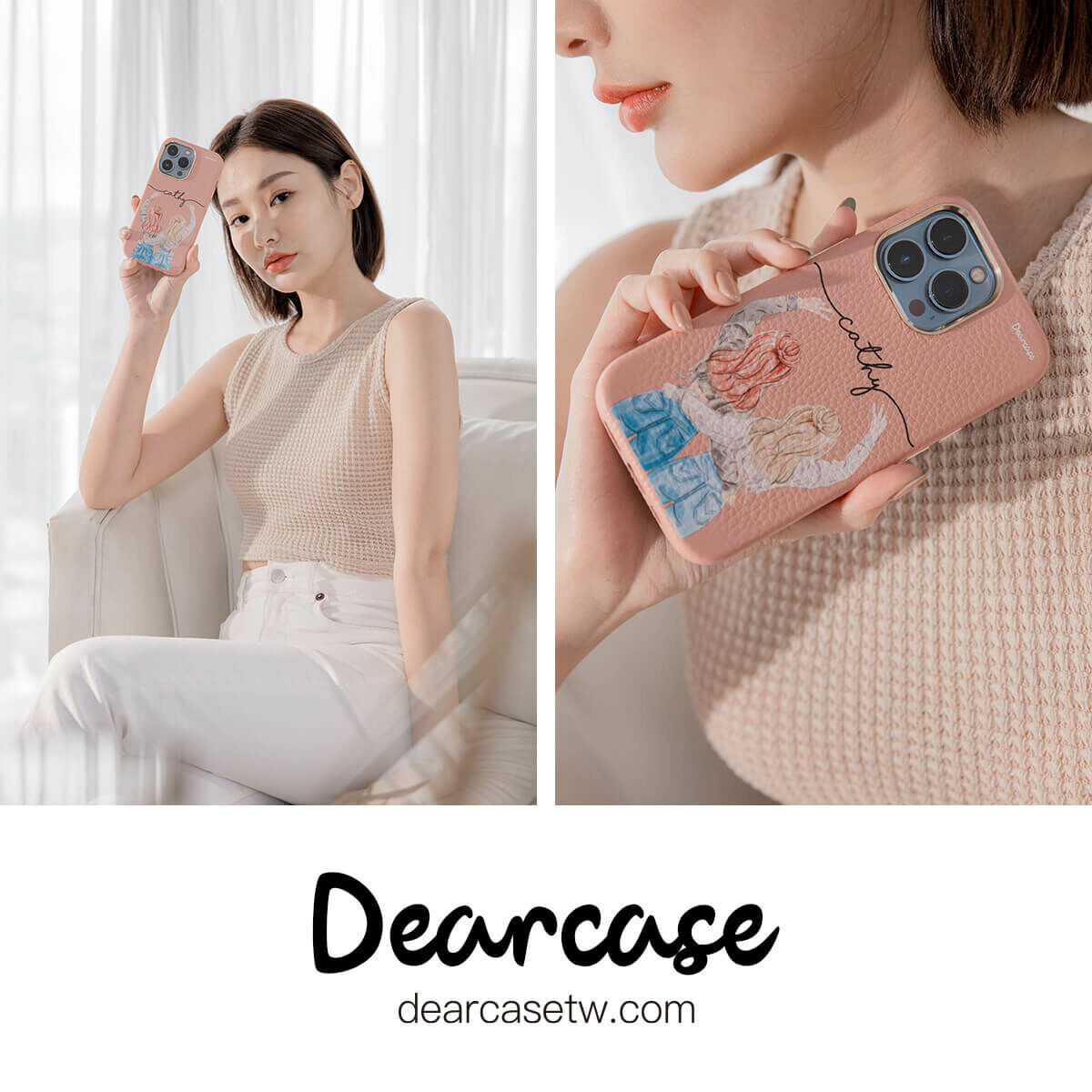 閨蜜女孩 蜜荔殼 蜜荔粉皮革殼 - (訂製名字) iPhone客製化手機殼