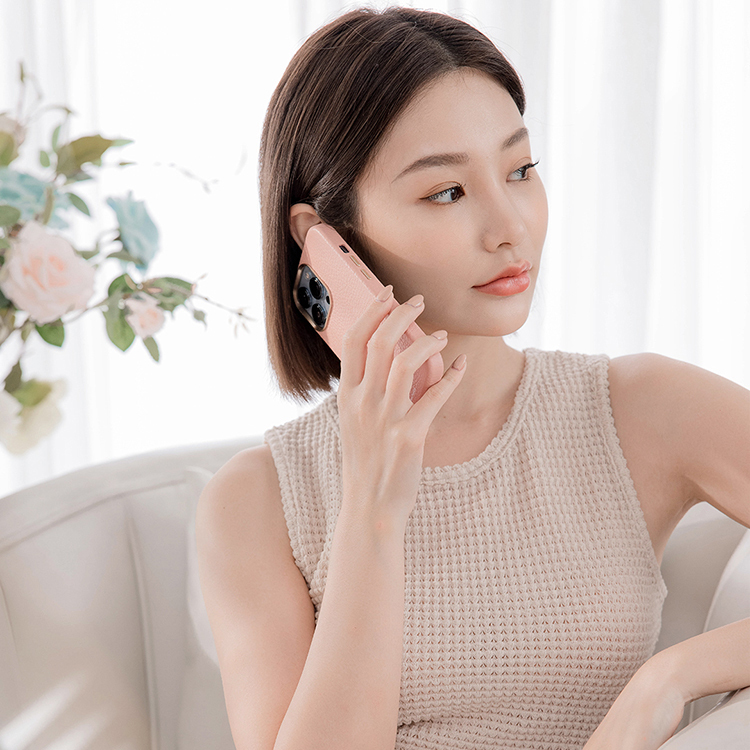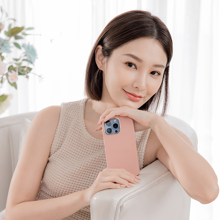 休閒女孩 蜜荔殼 蜜荔粉皮革殼 - (訂製名字) iPhone客製化手機殼