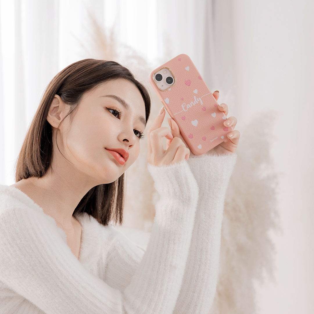 少女愛心 蜜荔殼 蜜荔粉皮革殼 - (訂製名字) iPhone客製化手機殼