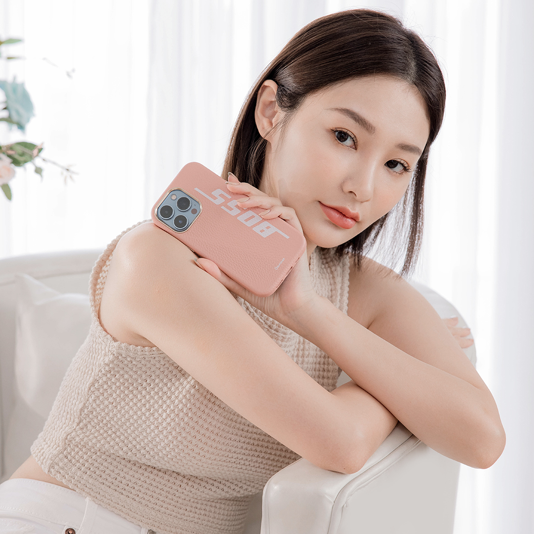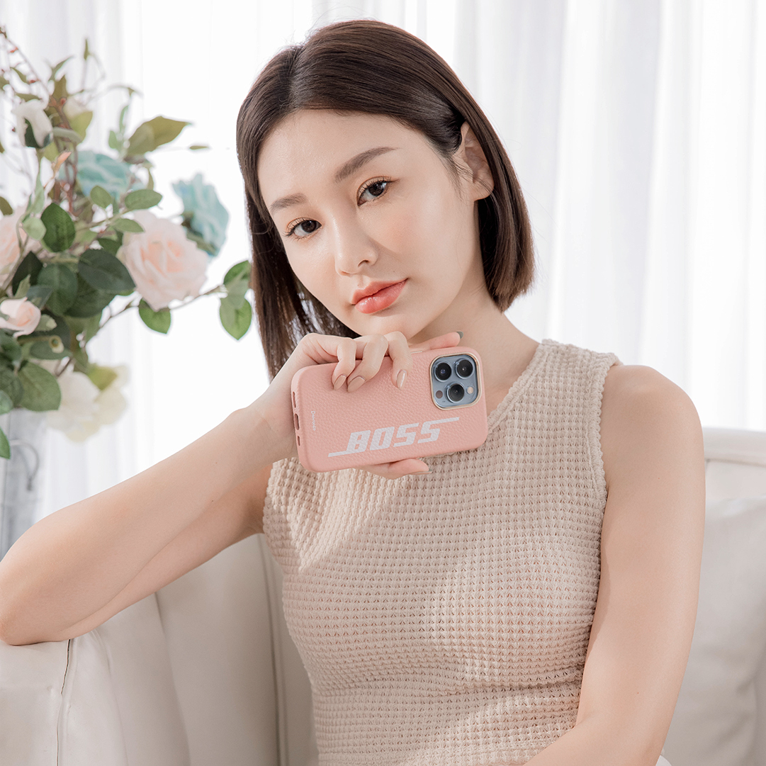 老闆字體 蜜荔殼 蜜荔粉皮革殼 - (訂製名字) iPhone客製化手機殼