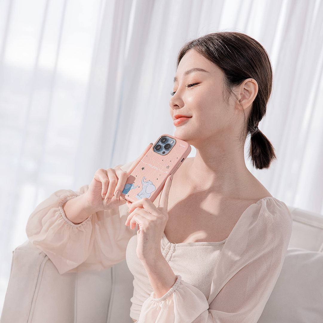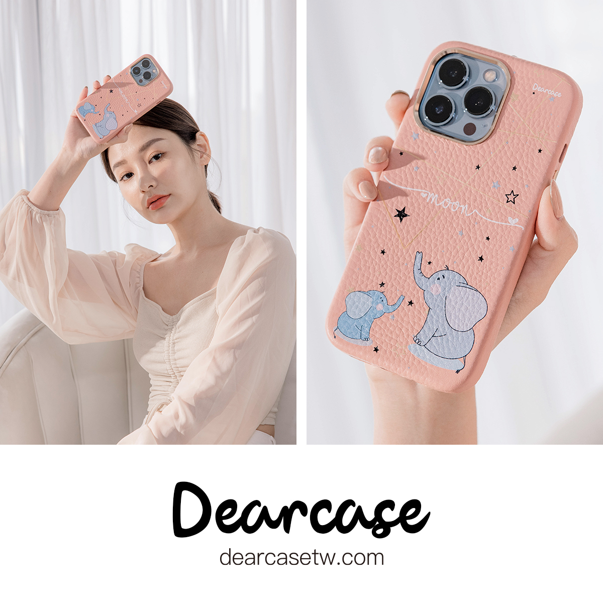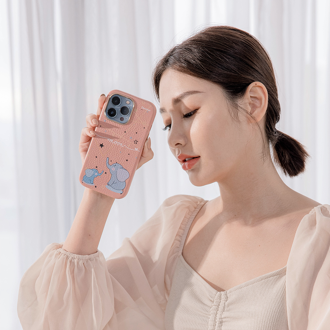 灰色小象 蜜荔殼 蜜荔粉皮革殼 - (訂製名字) iPhone客製化手機殼