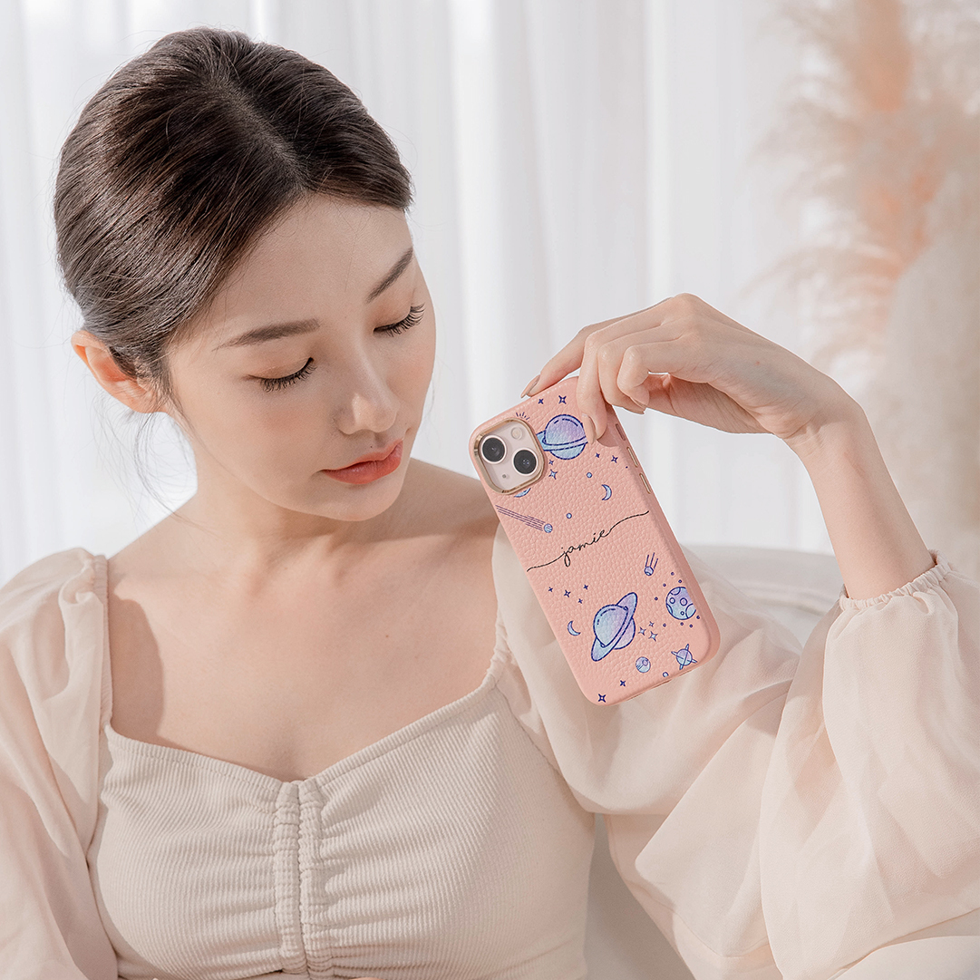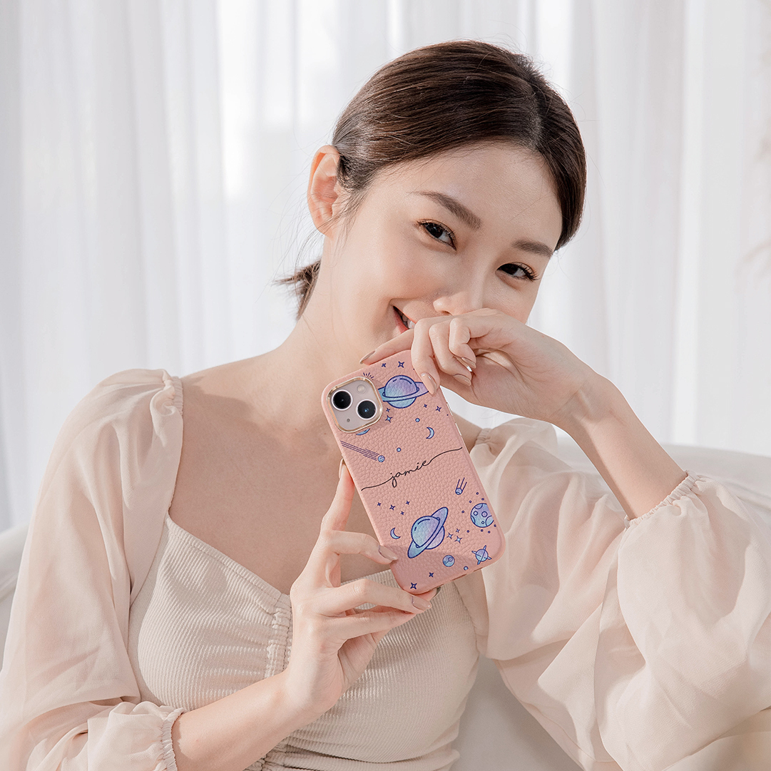 紫色星球 蜜荔殼 蜜荔粉皮革殼 - (訂製名字) iPhone客製化手機殼