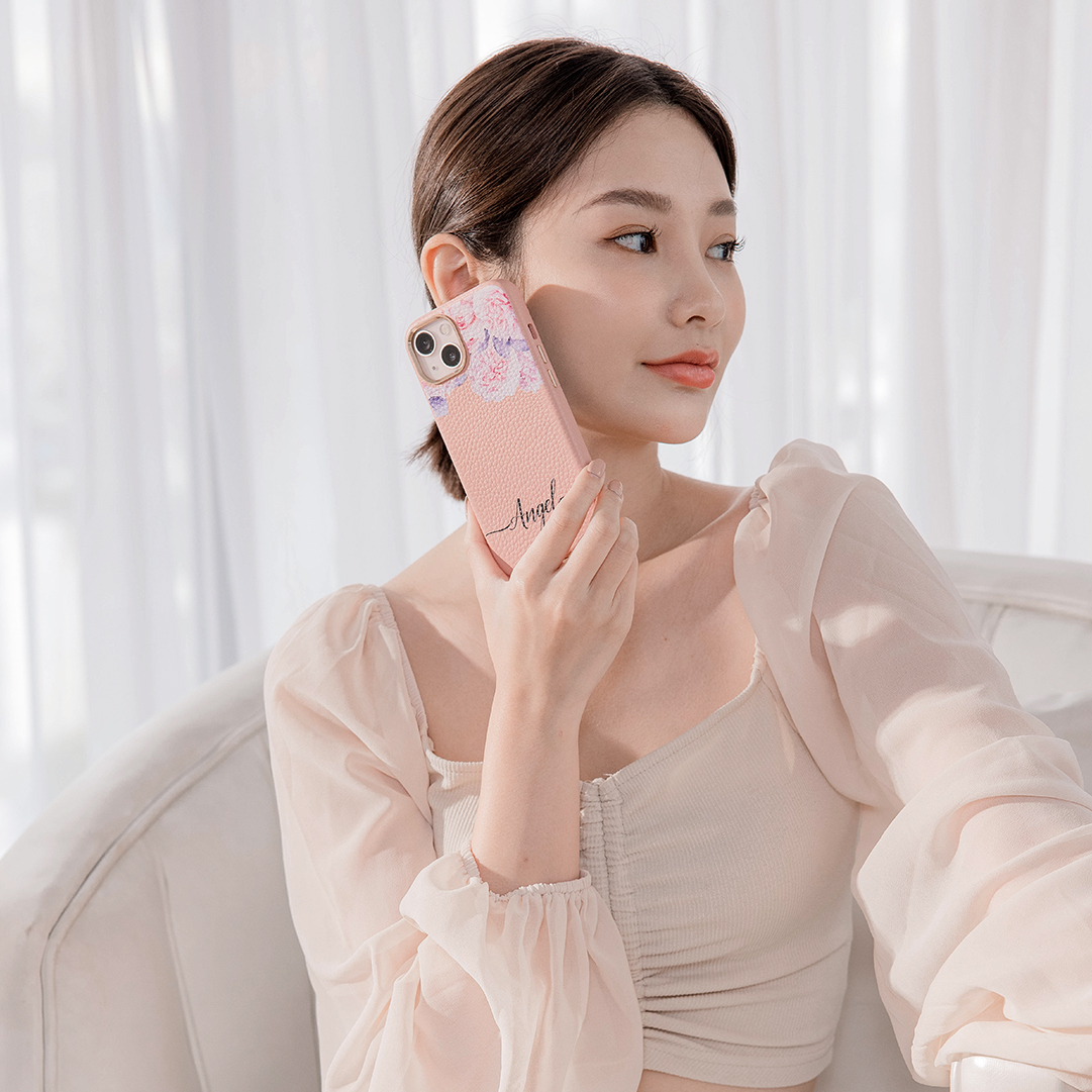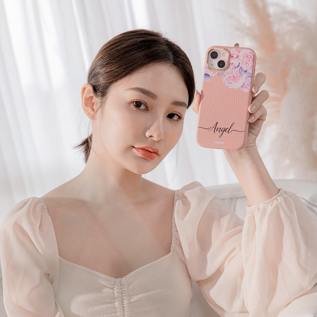 少女玫瑰 蜜荔殼 蜜荔粉皮革殼 - (訂製名字) iPhone客製化手機殼
