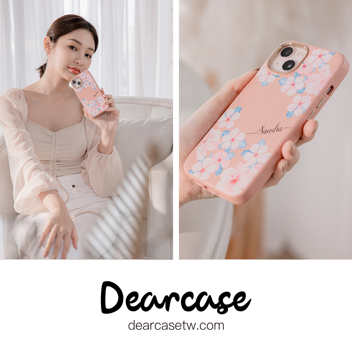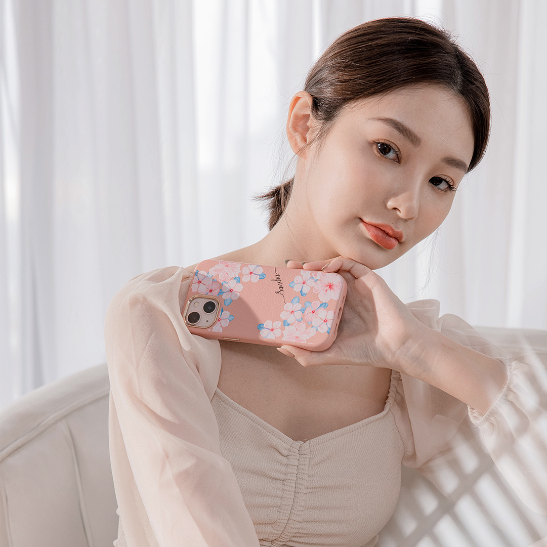 初戀櫻花 蜜荔殼 蜜荔粉皮革殼 - (訂製名字) iPhone客製化手機殼