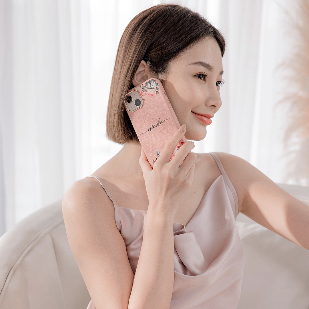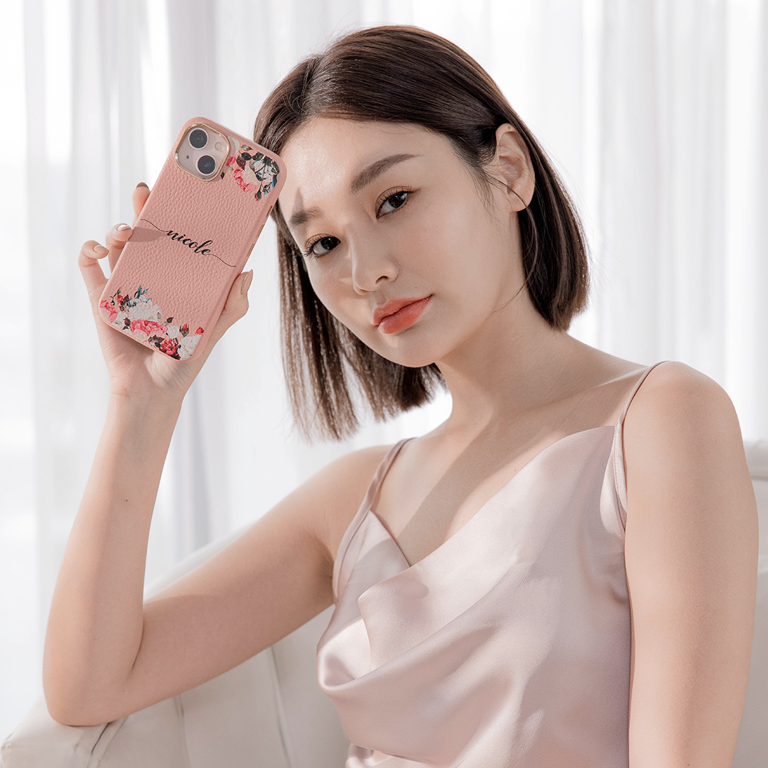 氣質玫瑰 蜜荔殼 蜜荔粉皮革殼 - (訂製名字) iPhone客製化手機殼