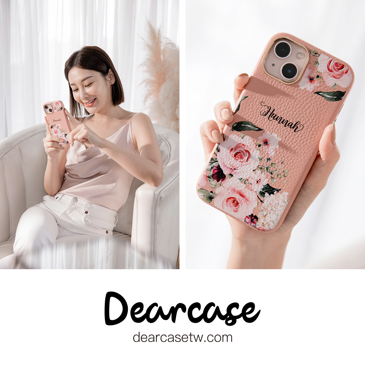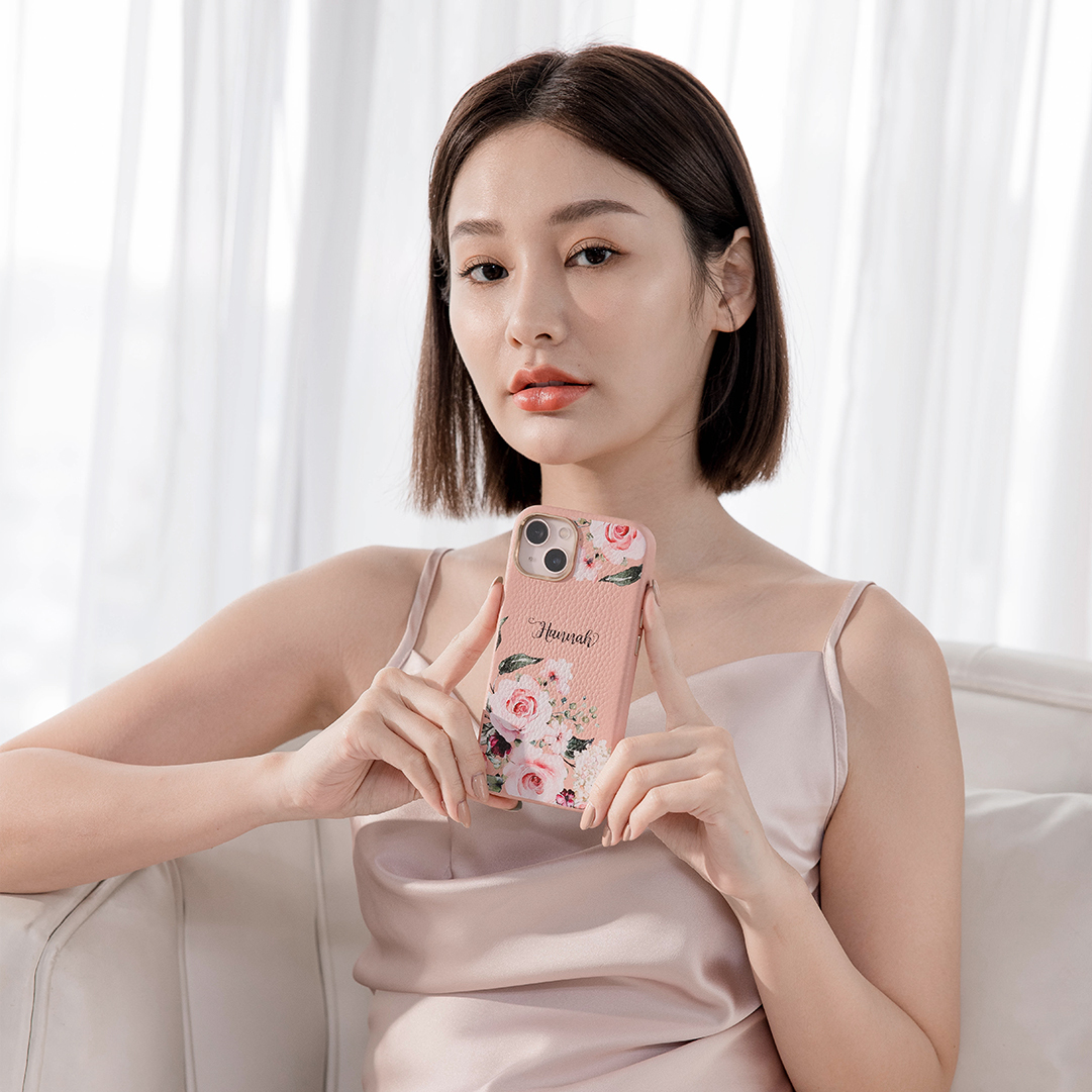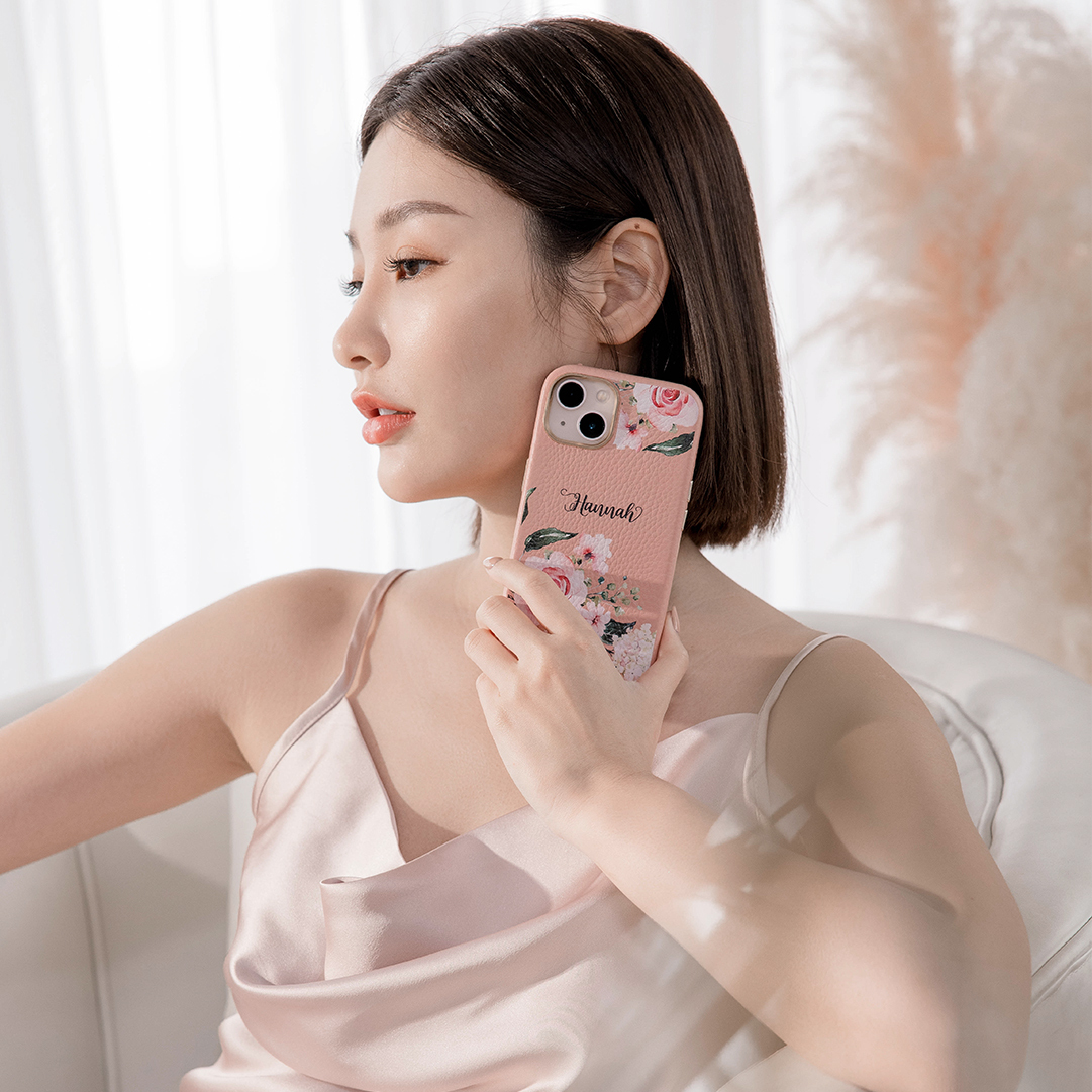 浪漫玫瑰 蜜荔殼 蜜荔粉皮革殼 - (訂製名字) iPhone客製化手機殼