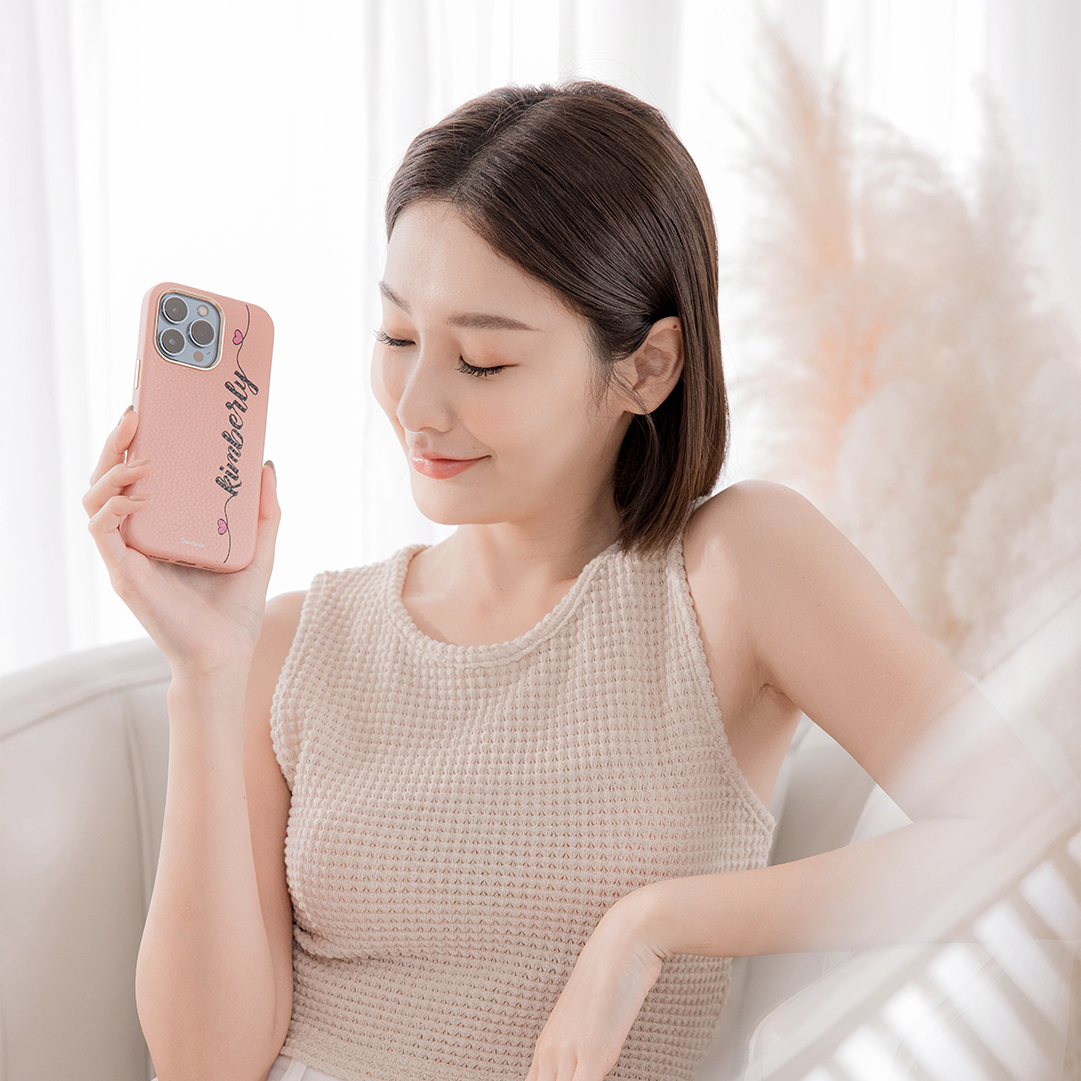俏皮姓名 蜜荔殼 蜜荔粉皮革殼 - (訂製名字) iPhone客製化手機殼