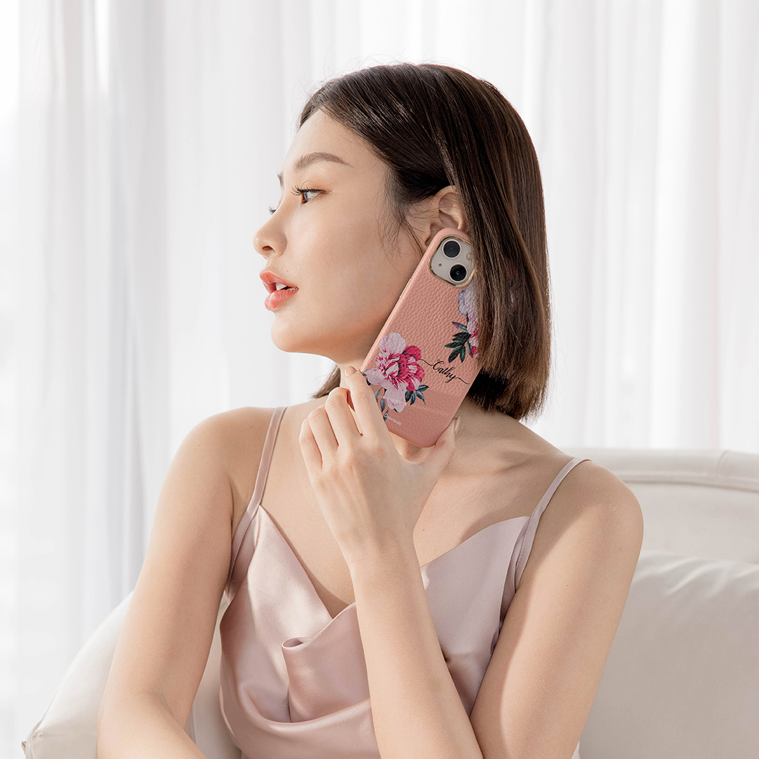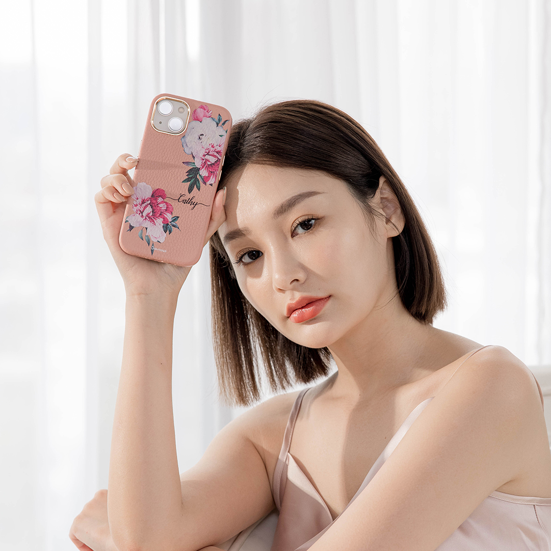 優雅淑女 蜜荔殼 蜜荔粉皮革殼 - (訂製名字) iPhone客製化手機殼